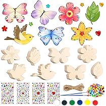 56 Stück Bastelsets Für Kinder, 40 Stück Schmetterling Holz Mit Aquarellstift & Edelsteinaufkleber, Beschäftigung Für Kindergeburtstag, Basteln Kindergeburtstag DIY Geburtstag Handwerk Basteln Kinder