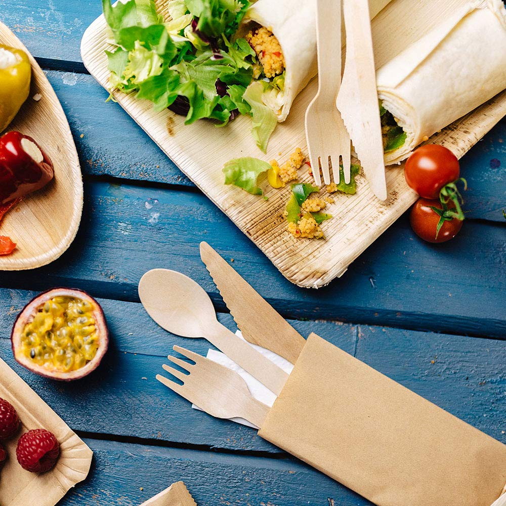 Holzbesteck (Messer, Gabeln, Löffel) Biologisch Abbaubar