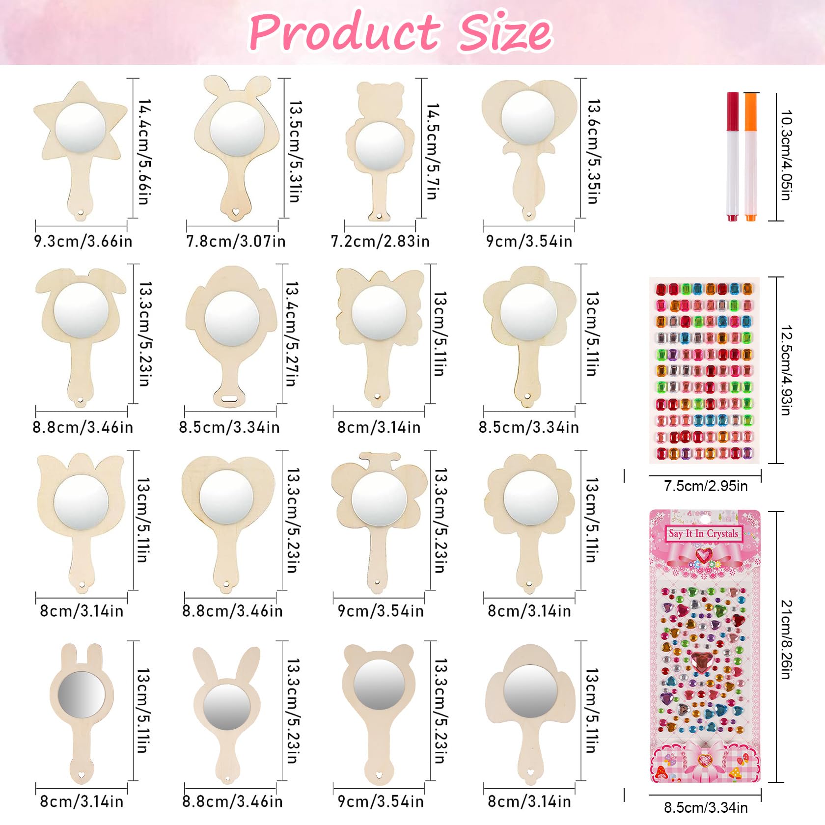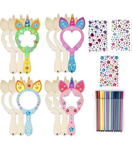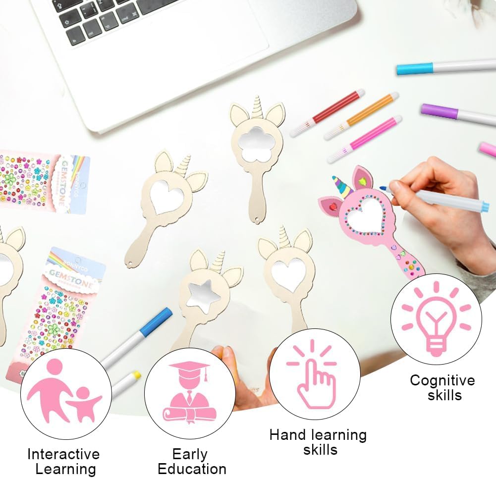 DAOUZL Einhorn Basteln, 40 Stücke Holzspiegel Zum Basteln, Unvollendete Handspiegel, Holzspiegel Für Kinder, DIY Holzspiegel Handwerk, Bastelset Kindergeburtstag Für DIY Kinder Malen Dekoration