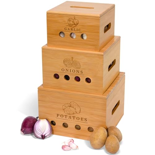 Premium Kartoffel Aufbewahrungsbox [3er Set] – Längerfrische Kartoffel Aufbewahrung, Knoblauch und Zwiebel Aufbewahrung – Bambus Holz Kartoffelbox DUHARS Kartoffel Aufbewahrungsbox Holz Selber Bauen Gemüse Aufbewahrung Homety Kartoffel Aufbewahrungsbox 3er Set Kleine Holzkiste Die besten 8 Kartoffel-Aufbewahrungsboxen i Vergleich