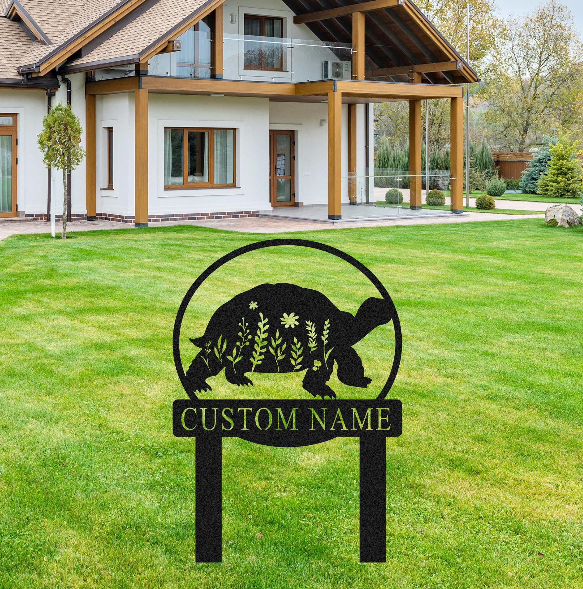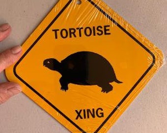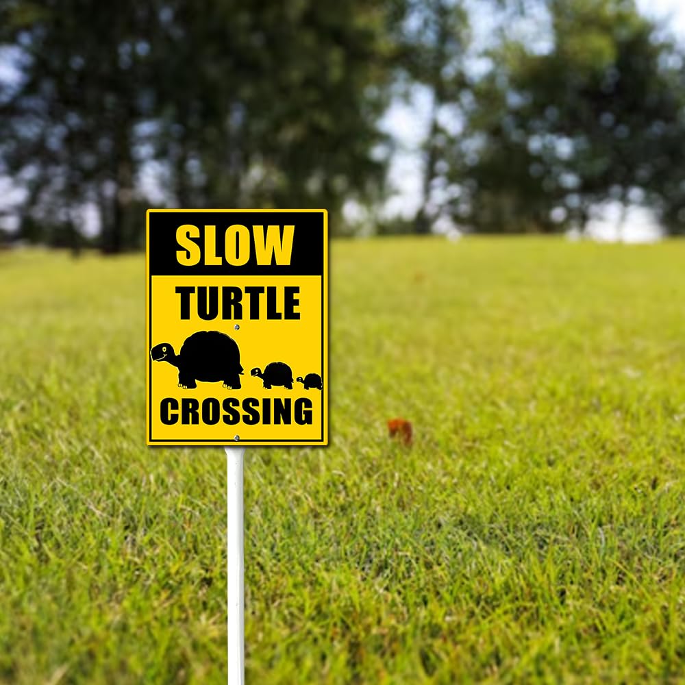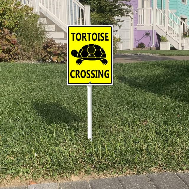 Horienteeon Schildkröte überqueren Hofschild Mit Heringen, 20 X 30 Cm, Stabiles Aluminium, Rostfrei, Gartenhaus, Hof-Dekoration, "Slow Down – Turtle Crossing