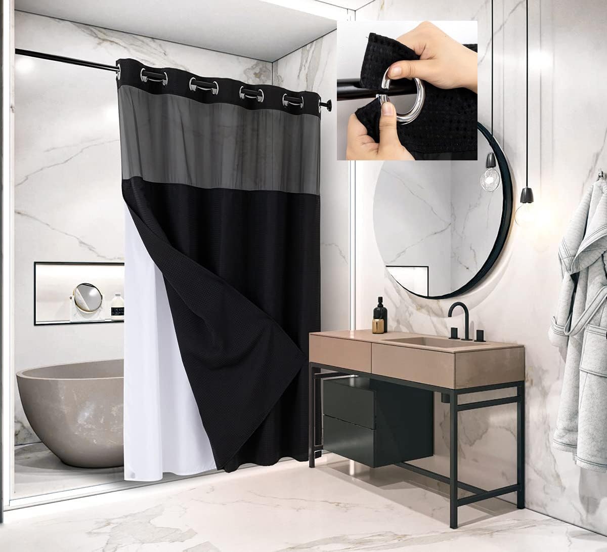 Verwenden Sie ein mildes Reinigungsmittel., Nicht bleichen. Was macht unsere Duschvorhänge einzigartig? 1., Wir produzieren Waffel-Badezimmer-Duschvorhang-Sets mit wasserfestem Lotusblatt-Design. Schaffen Sie eine warme oder einfache Atmosphäre Einfach in der Maschine waschen und trocknen oder bei niedriger Temperatur bügeln. Wenn Sie einen Edelstahlhaken benötigen, klicken Sie auf Bündel mit diesem Artikel Grüner Duschvorhang Luxuriöser Duschvorhang, Waffelgewebe, Weich, Strukturiert, Hotel-, Spa-Qualität, Maschinenwaschbar, 180 X 180 Cm, Grün Duschvorhang Grün Damen Badezimmer Dekorationen Set mit Haken 182,9 x 182,9 cm wasserdichtes Polyestergewebe. Optionen Es kann dazu führen, dass die Wasserperlen Kugeln auf der Oberfläche des Duschvorhangs bilden und leicht gleiten. Größe: 180cm breit x 200cm hoch, 12pcs Metalltüllen auf der Duschvorhangplatte; 12pcs Kunststoffringe in der Verpackung, Einfach zu installieren Blockiert Spritzer, hält den Badezimmerboden trocken Hotel-Luxus-Stil: Wir wählen über 1000 Luxus-Duschvorhang im Hotel-Stil. Langlebiger Haken, kein Aufwand, kein Ärger, leicht zu verschieben. Wählen Sie letztendlich einfachen Waffelstoff. Keine Kunststoffhaken: Unser Duschvorhang mit Waffelmuster hat keine Kunststoffhaken, die sich leicht verdrehen und brechen können. Wasserdichter Stoff: Duschvorhang der dritten Generation mit Waffelmuster für effiziente Wasserbeständigkeit. Besenhalter - Werkzeughalter - Besenaufhängesystem - 4 Stück - Haken hinter der Tür Die dreifache Dichte lässt ihn baumeln und schwebt nicht Und sein schwerer Stoff verhindert, dass er in der Dusche weggeweht oder am Bein haftet., 3., Verstärkte Metallösen reduzieren das Risiko, dass die Ösenvorhänge am Haken reißen. Ist weiße Vorhänge transparent oder sehr blickdicht? Der Stoff des weißen Waffelduschvorhangs ist schwer, blickdicht, um Ihre Privatsphäre zu schützen.