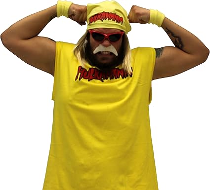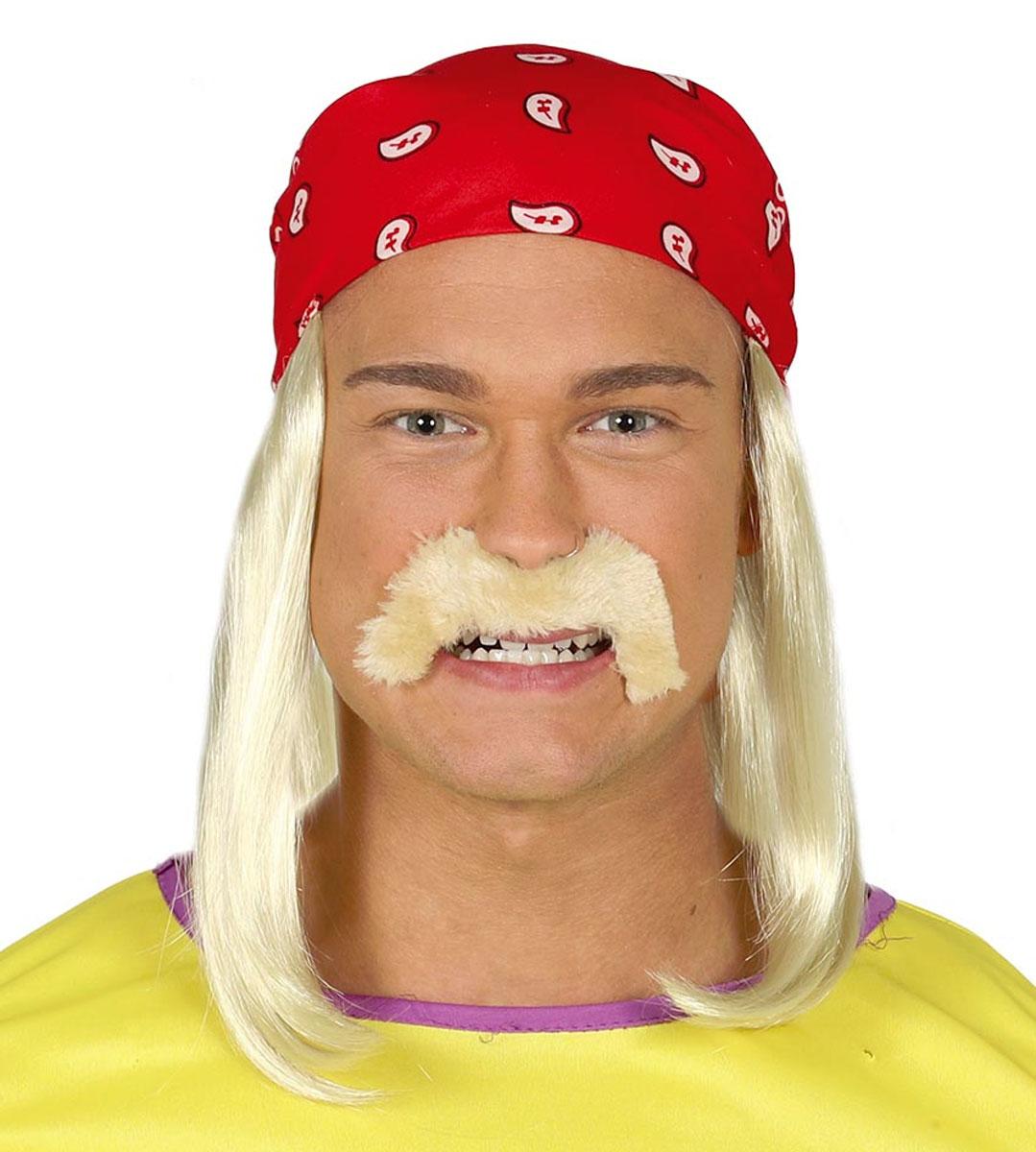 Hulkamania Shirt Mens Red Hulkamania Wrestler Bandana With Wig Mustache Halloween Costume