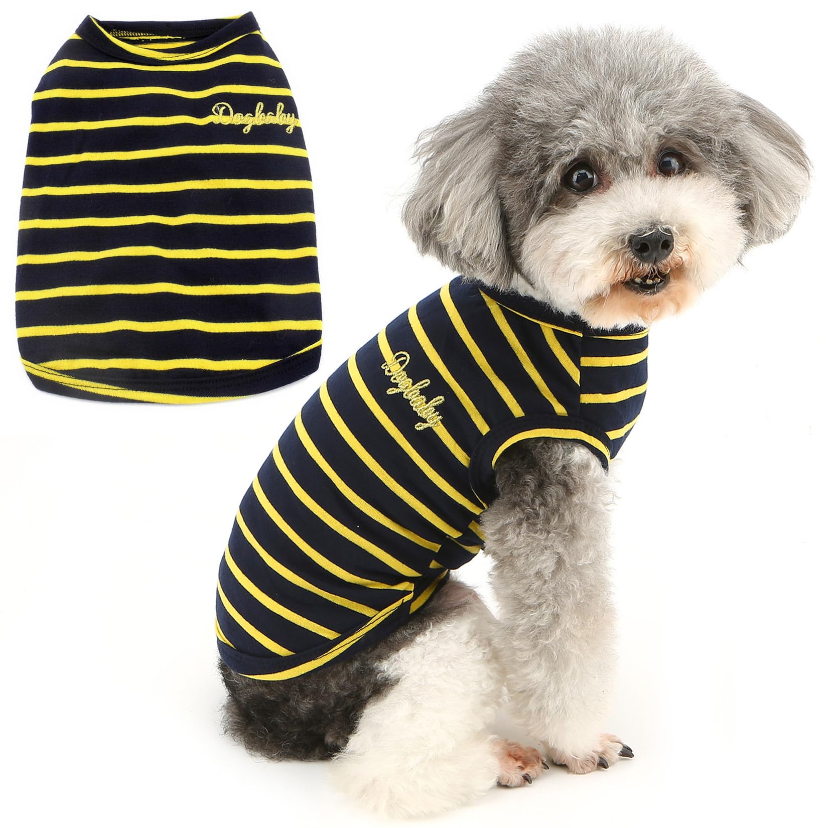 Zunea Hunde Shirts Für Kleine Hunde Sommer Weste T-Shirts Weiche Baumwolle Gestreifte Welpen Kleidung Tank Top Ärmellose Bekleidung Hund Tee Shirt Haustier Katzen Chihuahua Kleidung Gelb S