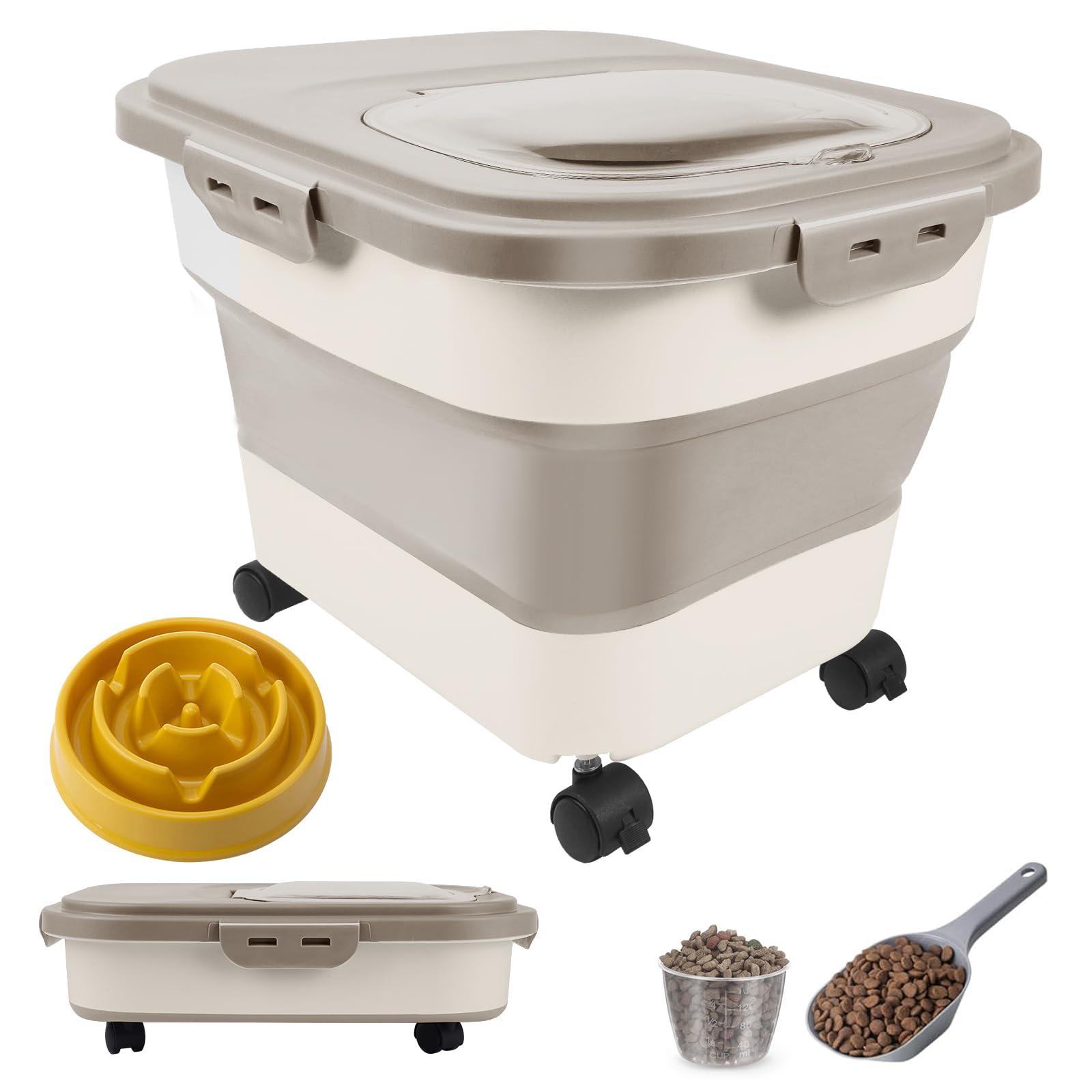 Egal, ob Sie es in einen anderen Raum verlegen oder es für ein Picknick mit Ihren Haustieren im Freien mitnehmen, die leichtgängigen Rollen sorgen für ein problemloses Erlebnis Größe aufgeklappt: 41 cm L x 26 cm B x 30 cm H, geeignet für die Aufbewahrung von 10,4 kg Hundefutter. Vielseitige Aufbewahrung: Dieser unverzichtbare Futterbehälter für Haustiere ist ideal für die Aufbewahrung von Hunde- oder Katzenfutter, anderem Tierfutter und mehr. Größe zusammengeklappt: 41 cm L x 26 cm B x 14 cm H, kann ca., 2,9 kg tragen., Hunde- oder Katzenfutter Sein schmales Design und die leichte Bauweise sorgen dafür, dass es nahtlos in enge Räume passt, während der Griff und die tragbare Struktur das Bewegen erleichtern. Unterstützen Sie alle Teile, die Sie benötigen. Dieser faltbare Aufbewahrungseimer ist perfekt für Hundefutter, Katzenfutter/Streu, Zucker, Mehl, Reiskörner oder Speisekammerklammern und bietet eine dekorative Bauernhaus-Ästhetik, die jede Küche oder jeden Stauraum ergänzt. Aufbewahrungsbox Hundefutter RoxNvm Hundefutter Aufbewahrung, Zusammenklappbarer Futtertonne, 10L Futterbox 10kg Trockenfutter-Dose für Hunde aus weißem Metall, mit Deckel aus... Hervorragende Abdichtung für Frische: Die doppelten luftdichten Dichtungen und 4 seitlichen Verschlussdeckel bieten eine hervorragende Abdichtung, damit das Futter Ihres Haustieres länger frisch und frei von Feuchtigkeit bleibt Hier findest Du die Top 16 unter den besten Hundefutterbehälter – jetzt vorbei schauen. Futterbehälter sind sehr praktisch, da sie einen ausreichenden Vorrat an Futter für die Tiere aufnehmen. Sie können in Behältern mit verschiedenen Füllmengen und Formen verwendet werden Und dieses durchdachte Hundefutter-Aufbewahrungsbehälter-Set mit einer schönen Box ist eine ideale Wahl für jede Familie Futterbehälter Hund – Die 15 besten Produkte im Vergleich