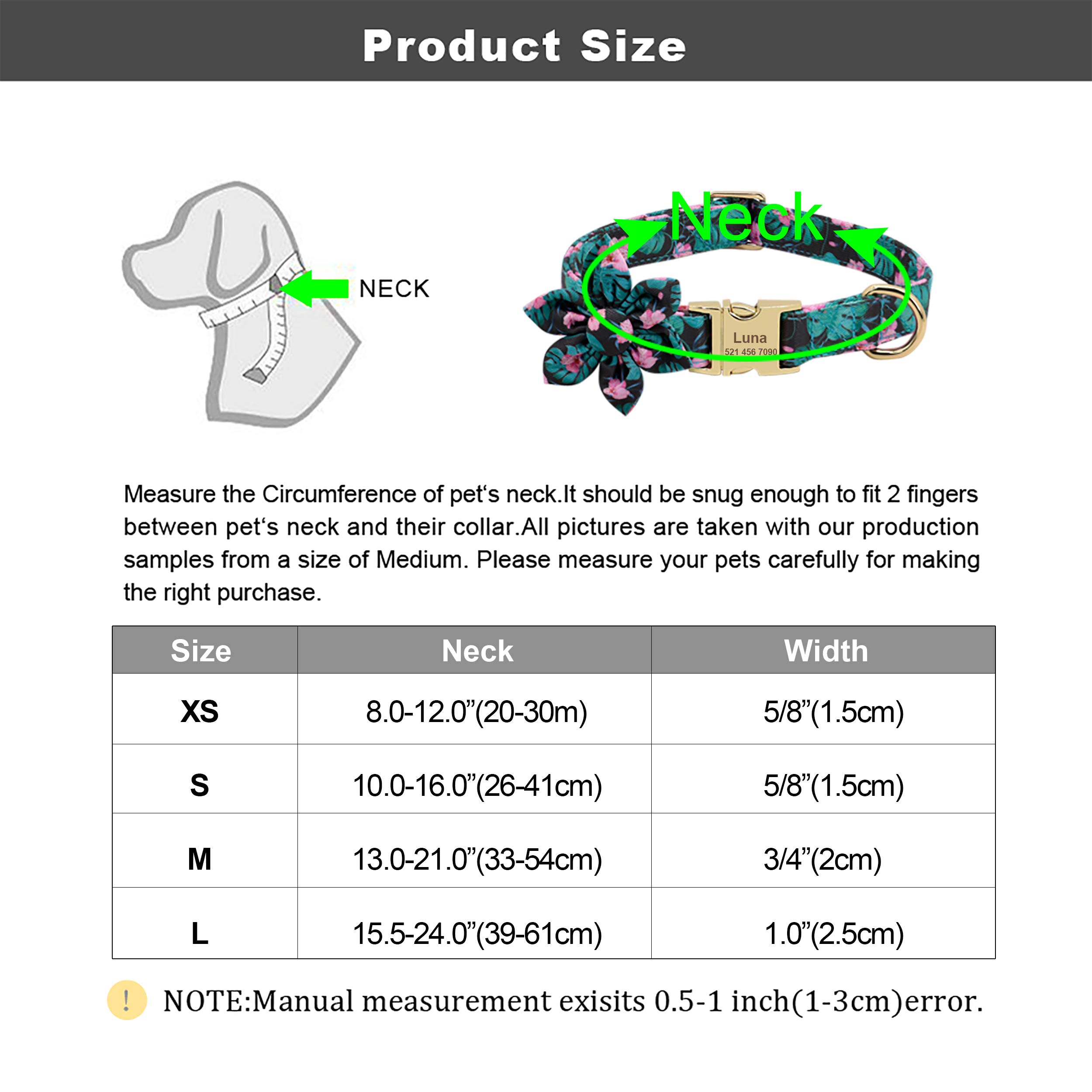 Dieses Halsband ist ein einzelnes Produkt, weitere passende Sets finden Sie bitte B08KZHYCX4 und B09STLRJ7K. ▶ Starkes und robustes Material – Außen: aus hochwertigem Baumwollstoff, das rosa Hunde-Garn schadet der Haut Ihres Haustieres nicht. M: Halsumfang 30–55 cm, Breite 2 cm, Gewicht 78 g. Der helle Stoff zeigt feine Blüten in Weiß und Pink mit olivgrünen Blättern – als würde dein Hund über eine Sommerwiese laufen. My Accessories London Curve – Gürtel mit goldfarbener Vintage-Schnalle... L: Halsumfang 40–65 cm, Breite 2,5 cm, Gewicht 108 g. Ob beim Spaziergang im Park, im Wald oder beim Sonntagsbesuch – MARLA ist ein stilvoller Begleiter, der Natürlichkeit und Eleganz vereint, ohne überladen zu wirken. Hundehalsband Oder Hundegeschirr SUSI – Olivgrün, Blumenmuster Das Hundehalsband „MARLA“ verbindet den natürlichen Charme von Leinen mit der romantischen Leichtigkeit eines zarten Blumenmusters. Schlagwort-Funktionen: Romantisches Blumenmuster-Design mit stabiler goldfarbener Hardware. Daher ist es ein wenig schwer (XS: 54 g, S: 55 g, M: 78 g, L: 108 g Bichon Frisé, Yorkshire Terrier, Cocker Spaniel, Französische Bulldogge, Pudel, Bulldogge, Beagle, Husky, Bullterrier, Boxer, Dalmatiner, Labrador Retriever, Golden Retriever, etc. Ideal für kleine, mittelgroße und große Hunde Welpen, z., B. S: Halsumfang 25–40 cm, Breite 1,5 cm, Gewicht 55 g. Material: Strapazierfähiges, dichtes Gewebe innen mit bequemer Baumwolle außen. ▶ 4 Größen zur Auswahl – alle Hundehalsbänder können leicht eingestellt werden. ▶ Einzigartige Blumendekoration – die Blume des niedlichen Hundehalsbandes ist abnehmbar, 1 elastische Schlaufe auf der Rückseite, es kann leicht an jeder Art von Halsbändern befestigt werden Innen sorgt olivgrünes Kunstleder für weiche Polsterung, angenehmen Sitz und zusätzliche Langlebigkeit. Beirui Hundehalsband mit Blume, ein perfektes Weihnachtsgeschenk für Ihre Familie. Material: Strapazierfähiges, dichtes Gurtband innen mit bequemer Baumwolle außen. 12 helle Musterfarben Hinweise: Vor der Bestellung messen Sie bitte den Halsumfang Ihres Hundes genau und stellen Sie sicher, dass nur 2 Finger zwischen Halsband und Hundehals passen. 3,5 cm breit S: Halsumfang 40–55 cm – ca.