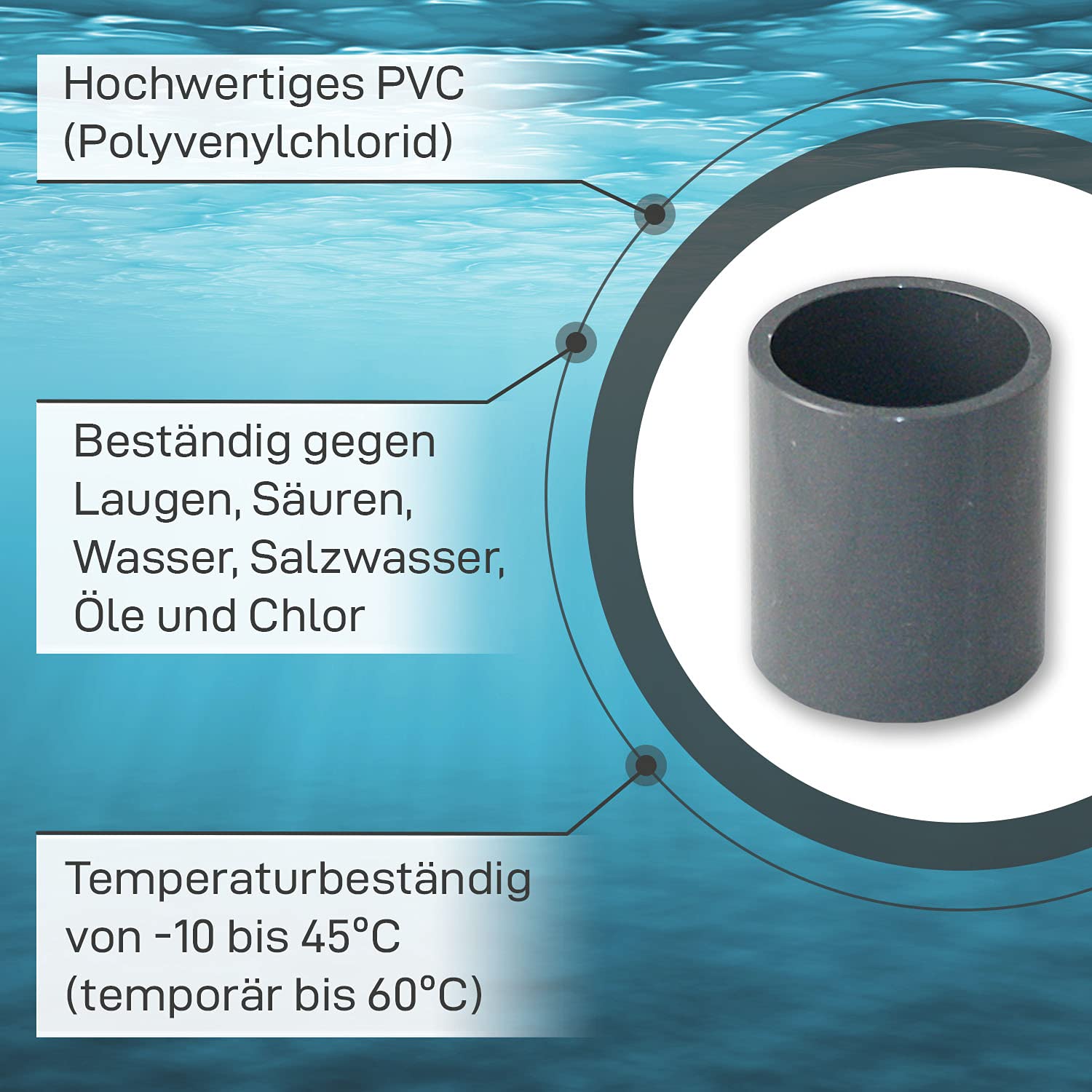 PVC-Muffe I 50mm I Klebemuffe I PVC-Rohrmuffe Mit 2-Anschlüssen I Rund I Rohr-Verbindungsstück Für Rohre Und Fittinge I Bm0961
