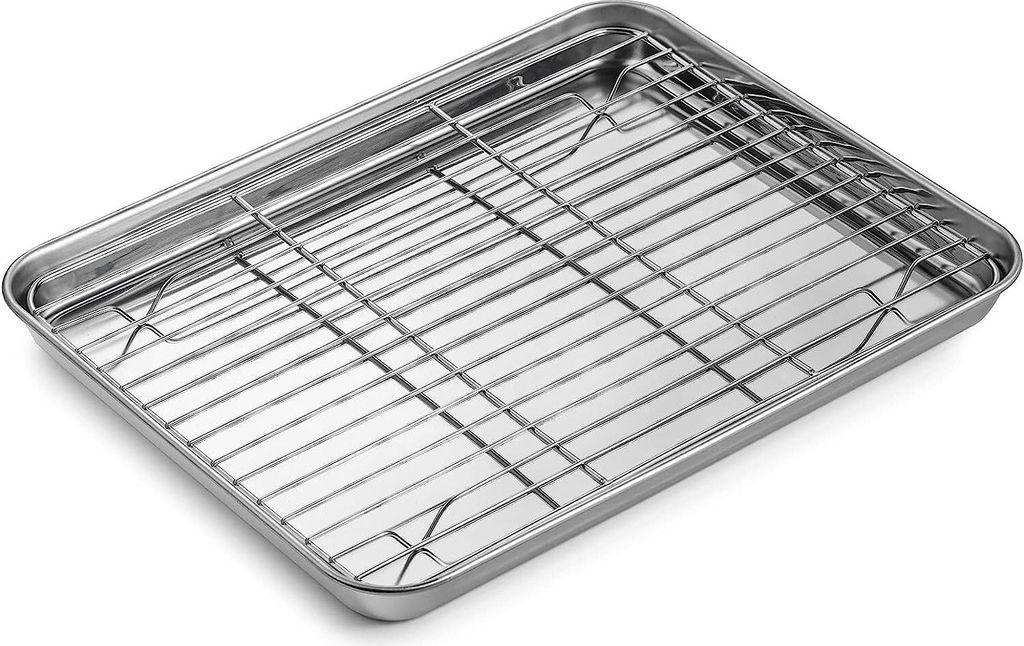 Sie können gegrilltes Fleisch, Spatchcock-Truthahn, knusprigen Speck, Hühnerflügel, Grillrippen, gebackene Kartoffeln herstellen, um nur einige zu nennen. Lebensmittel backen gleichmäßig aufgrund der überlegenen Wärmeleitfähigkeit des Aluminiums. Funktioniert für alle Kochtechniken wie Braten, Braten, Grillen und Dehydrieren 【Spiegel-Finish-Design】 Diese Backblech-Oberflächen sind hochglanzpoliert, um das Risiko zu verringern, dass Lebensmittel zusammenkleben. 【Langlebiges Backformen-Set】Dieses Backformen-Set enthält 1 antihaftbeschichtete Halbkeksbleche und 1 Edelstahl-Kühlrost. Die tiefen Kanten können Lebensmittel aufnehmen, vermeiden den Saftfluss während des Backens und halten den Ofen sauber und ordentlich. 43,2 cm Aluminium-Backblech und Edelstahl-Kühlgitter-Set Abtropfgitter Backen ICQN Backbleche & -Gitter Mm Set 465 X 370 X Cooling Rack Joyfair Abkühlgitter, 3-Stöckiges Edelstahl Kuchengitter Auskühlgitter... Keine verbrannten Keksböden mehr: Natürliches Aluminium ist der beste Wärmeleiter, um sicherzustellen, dass Sie jedes Mal ein perfekt gebackenes Produkt haben. Backblech, Edelstahl Ofenblech Kuchenblech Die Verwendung in der Spülmaschine wird nicht empfohlen, da Verfärbungen aufgrund der in automatischen Geschirrspülmitteln verwendeten Reinigungsmittel auftreten. Backblech 43 cm | Preisvergleich bei