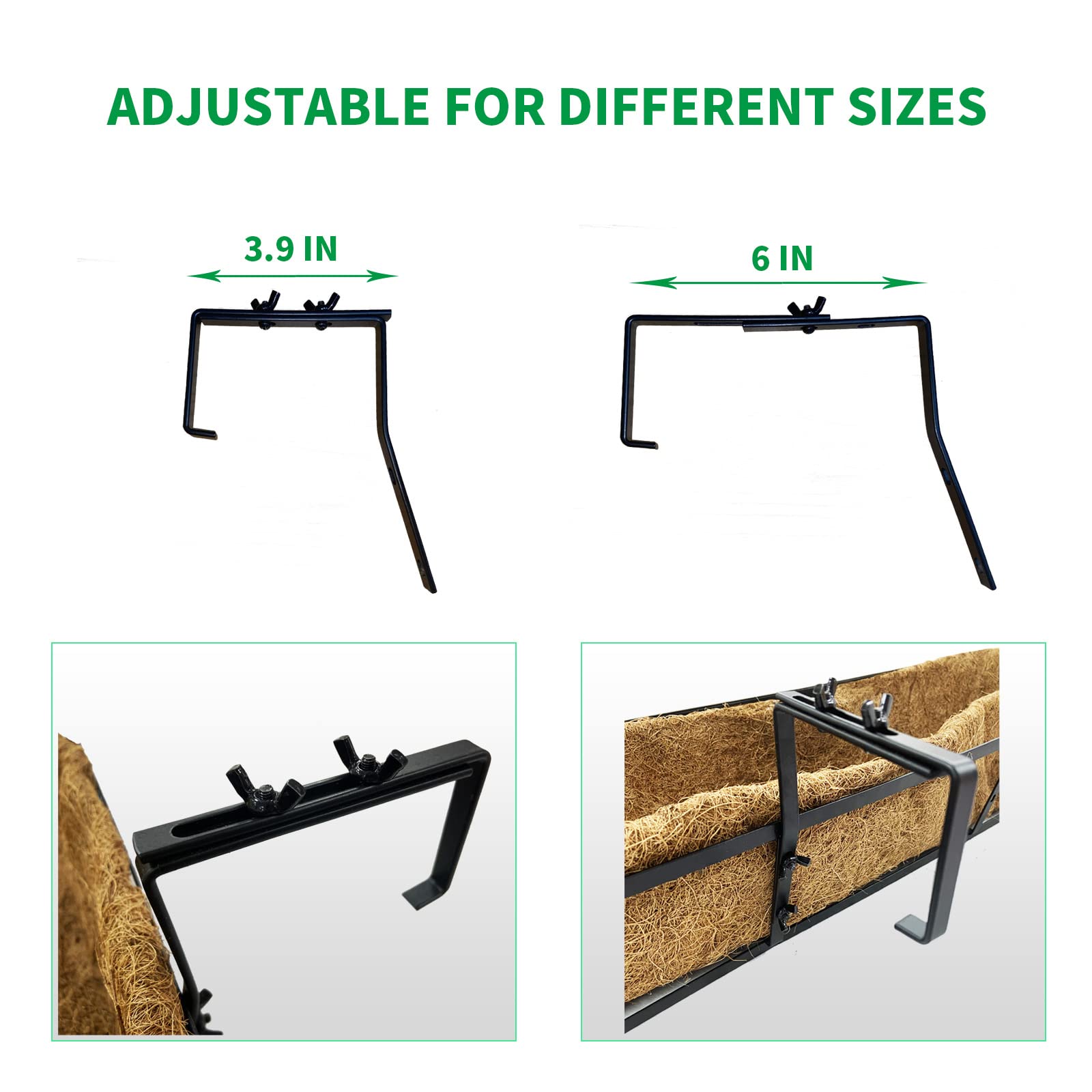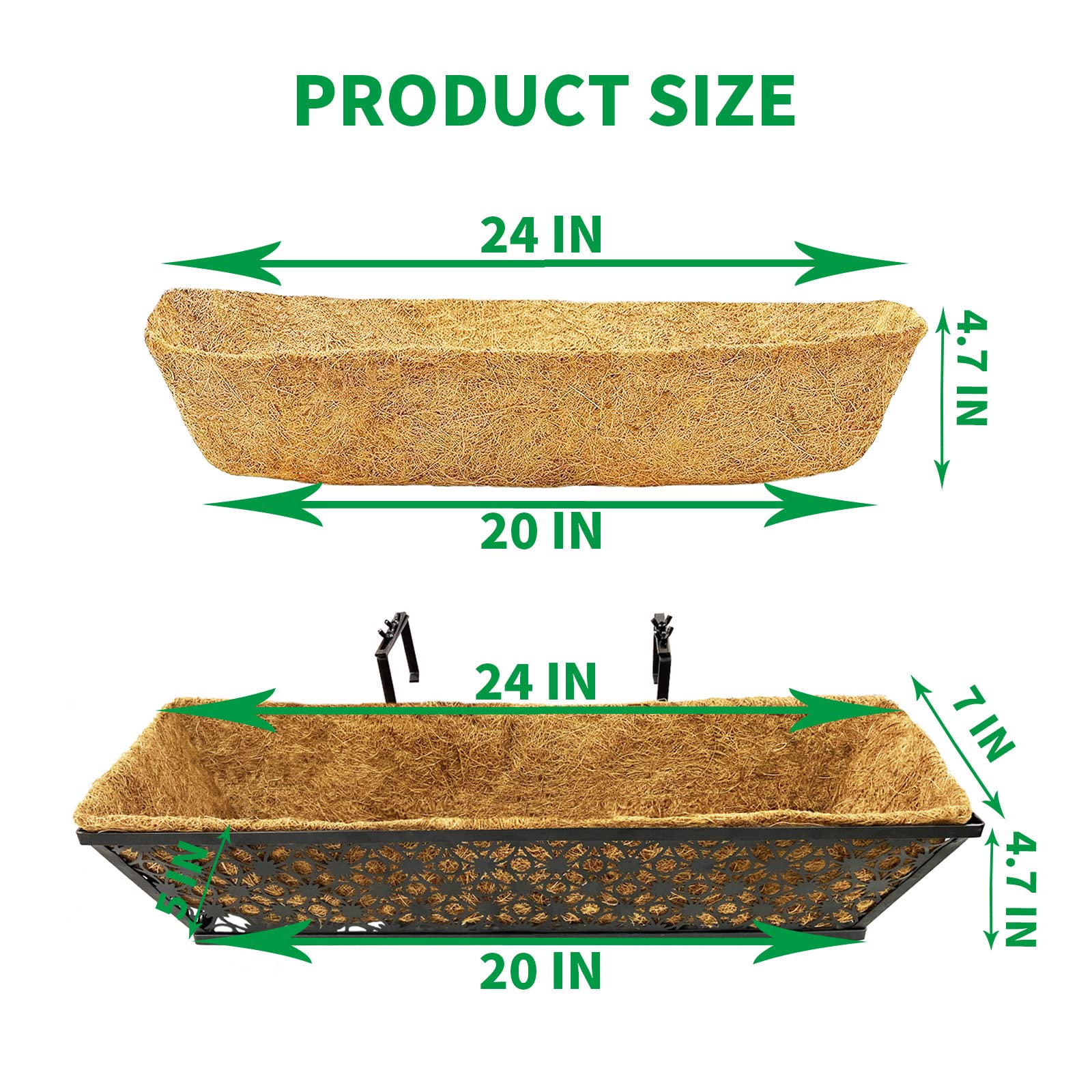ICoirStream Fenstergeländer Pflanzkasten - 6 Stück 61 Cm Schwarz Metall Hängende Blumen Pflanzgefäß Fenster Korb Deck Pflanzkasten Mit Kokos-Einlagen Für Außen- Und Innenbereich Rasen