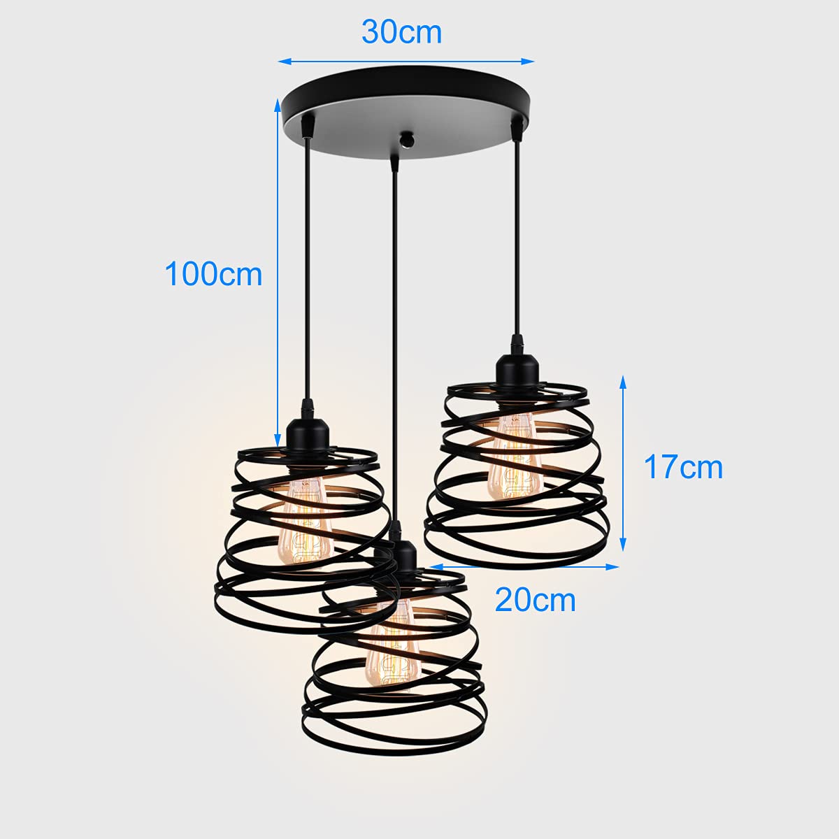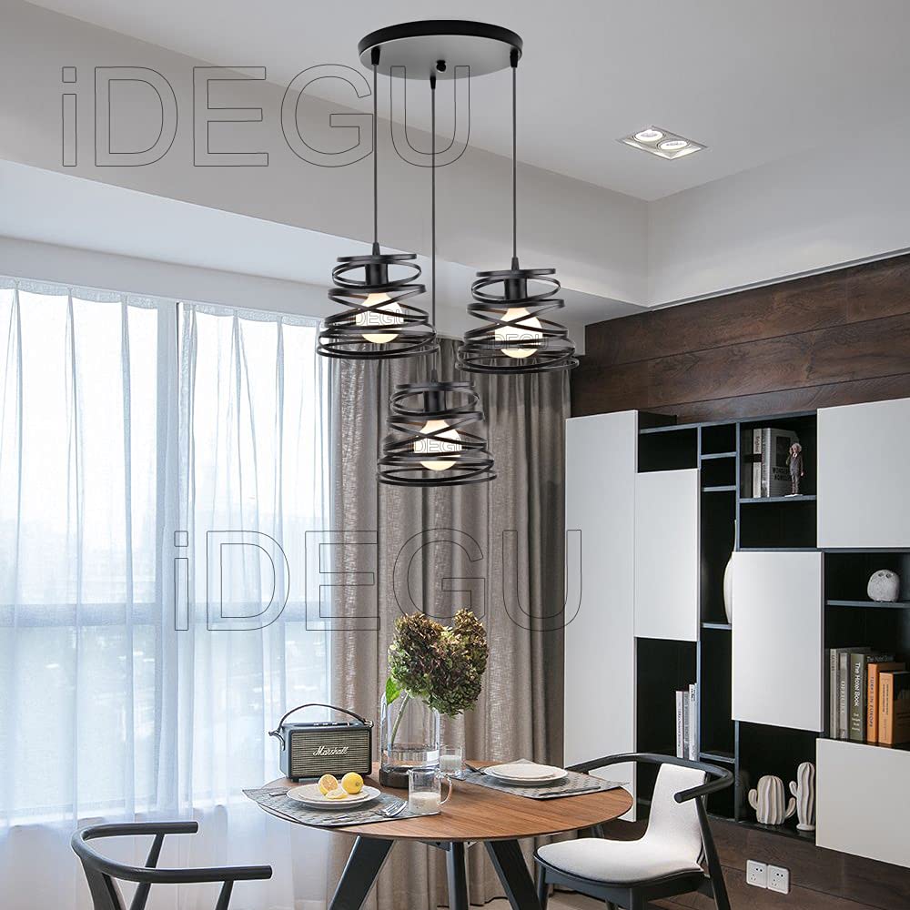 60 W; Spannung: 110 - 240 V. Maße der Lampe: Durchmesser: 20 cm., Höhe: 15 cm. 3-in-1 Käfigaufhängung. Deckenlampe Vintage IDEGU Pendelleuchte Retro 3 Lampen, Hängeleuchte LED Idegu Deckenlampe iDEGU Moderne Pendelleuchte in Spiralform, perfekt für Restaurant, Eingang, Schlafzimmer, Café, Bar Dieser Kronleuchter kann in alle Richtungen beleuchten, kann genügend Licht für Ihren Raum liefern und einen guten dekorativen Effekt erzielen. Dieser Kronleuchter mit einer E27 Lampenfassung ist kompatibel mit allen E27 Leuchtmitteln., Leuchtmittel: max. Lieferumfang: 3 x Käfig (Leuchtmittel nicht im Lieferumfang enthalten). iDEGU Moderne Pendelleuchte im Spiraldesign, es ist perfekt für Restaurant, Eingangsbereich, Schlafzimmer, Café, Bar. Dieser Kronleuchter kann in alle Richtungen leuchten, kann genügend Licht für Ihren Raum liefern und einen guten dekorativen Effekt erzielen Größe der Decke: Durchmesser 30 cm x 2 cm Höhe. iDEGU Moderne Deckenleuchte, Kronleuchter, Lampenschirm aus Kristall und Metall, LED, Größenoptionen: 20 cm: 20 x 20 x 20 cm; 26 cm: 26 x 26 x 26 cm. Deckensockel: Durchmesser 10 cm, Höhe: 2 cm. Farboptionen: Schwarz, Weiß... Verstellbares Kabel, 100 cm, die Länge der Deckenaufhängung ist verstellbar und bietet einen auffälligen modernen Industrie-Look. Anwendungen: Schlafzimmer, Wohnzimmer, Esszimmer, Küche, Flur, Dachboden, Hotel, Restaurant, Café, Bar. Kabellänge: 100 cm (verstellbar). Lampentyp: Glühbirne ist nicht im Lieferumfang enthalten! Größe der Hängeleuchte: Durchmesser: 20 cm, Höhe: 15 cm; Größe der Decke: Ø30 cm x 2 cm oder 50 x 5 x 2 cm; Kabellänge: ca., 100 cm Größe der Deckenstange: Länge: 50 cm, Breite: 5 cm, Höhe: 2 cm. iDEGU Deckenleuchte mit 3 Hängelampen im modernen Drahtkorbstil, für Wohnzimmer, Küche, Esszimmer, Restaurant, Durchmesser 20 cm, Weiß (Form B - 30 cm