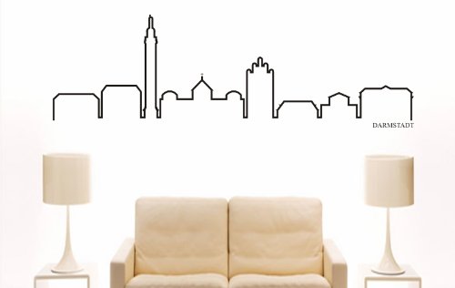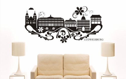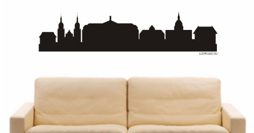INDIGOS UG - Wandtattoo Wohnzimmer - Wandaufkleber Ludwigsburg (Deutschland) Design 4-96x16 Cm - Schwarz E827 Skyline Stadt - Aufkleber Kinderzimmer Schlafzimmer Küche Badezimmer Büro Dekoration