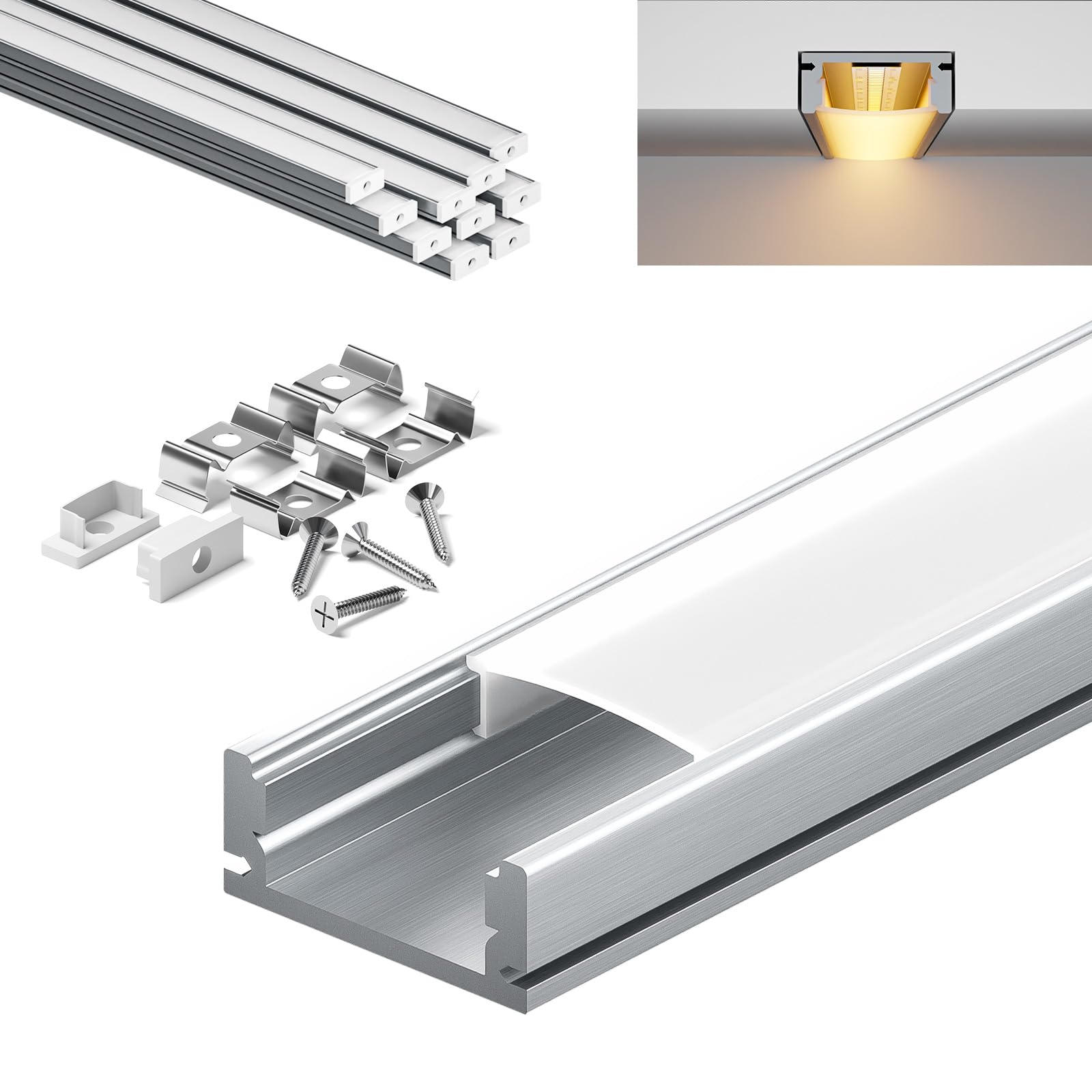 KOSOOM LED Aluminium Profil10 Stück x 2 m, mit mattierter PC-Abdeckung U-Form LED-Profill Maße 17,4 mm x 7 mm,Unterputzprofil Led-Streifen der Breite kleiner oder gleich 12,4 mm 10 Stück LED Profile e SMD 5050 RGB IP44 5m 13W/m 24v LED Streifen RGB Led Profil Nutzbar in verschiedenen Bereichen in Wohn- und Ausstellungsräumen. Alu-Bodenprofil GRAN, 200 cm eloxiert grau. Die opake Abdeckung reduziert effektiv Blendung und sorgt für weicheres Licht. Sind LED Profil für den eingebetteten Einbau geeignet? Dieses Aluminiumprofil ist für die Aufputzmontage und Nutmontage geeignet., KOSOOM LED profil Sind Montagezubehör enthalten? Ja, das Profil-Set enthält Schrauben, Endkappen und eine PC-Abdeckung. den-led-kosoom - Thiết Bị Điện GE Ist die PC-Abdeckung transparent oder opak? Eine opake Abdeckung (milchig-weiß) wird angeboten. LED Streifen Profil Lieferumfang:1 Stück Profilschiene inkl.