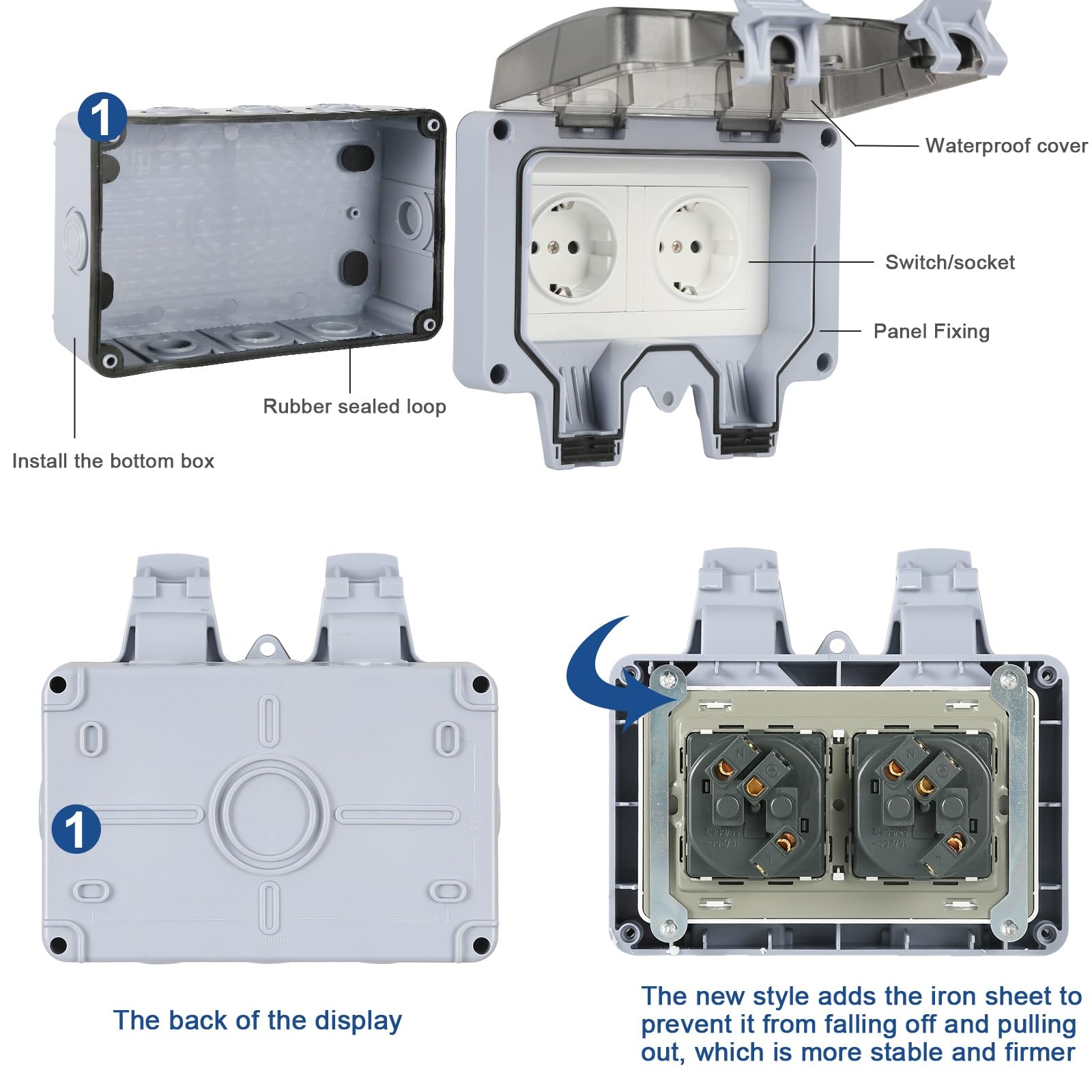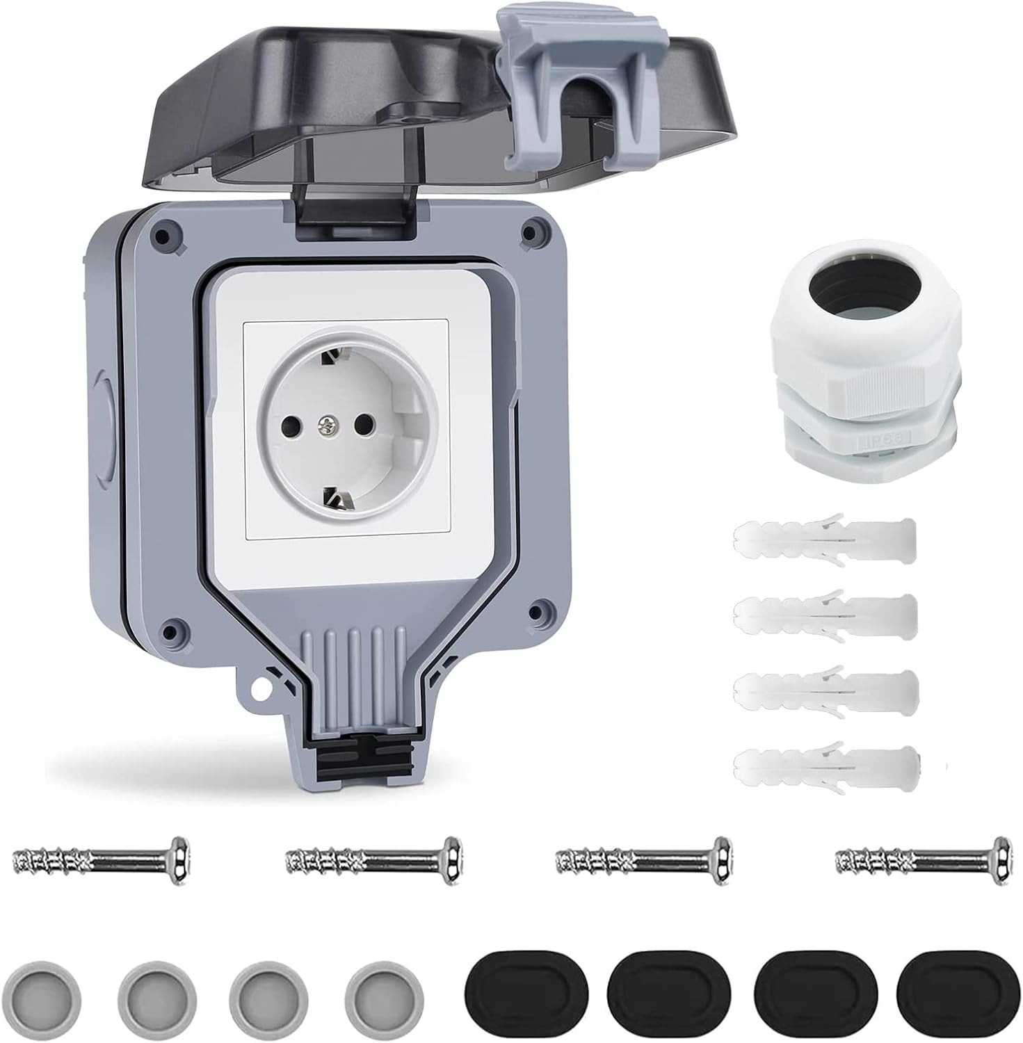 Outdoor Steckdose Aussensteckdose Wasserdicht IP66 Aufputz 16A Feuchtraum Steckdose Außen Doppelsteckdose Outdoor SEC 24 Zeitschaltuhr Steckdose Aussenbereich,Mechanische Timer Aussensteckdose Wasserdicht Wasserdicht Das IP66-zertifizierte wasserdichte Doppelsteckdosen-Design für den Außenbereich bietet im geschlossenen Zustand hervorragende Sicherheit und ist wasserdicht, ideal für eine sichere Stromversorgung unter schwierigen Bedingungen 【Steckdose Aussen】Die aus ABS-Material gefertigte Steckdose hat eine starke Struktur, ist verschleißfest und langlebig und verfügt über präzise elektronische Komponenten, um unterschiedliche Anforderungen zu erfüllen. Spezifikation Deutscher Stil 250V 16A 【Verpackung】Praktisches Kombi-Set aus Steckdosen und Schaltern, senkrechter Einbau, geringe Stellfläche, mit Abdeckung, feuchtraumtauglich. Herunterfahren mit einem Schlüssel Mit einem Schalter ist kein wiederholtes Ein- und Ausstecken erforderlich, was bequemer ist, um Strom zu sparen Sicher]Außensteckdose wasserdicht mit Schutzart IP66 für sichere Stromversorgung bei rauen Wetterbedingungen, leicht und kompakt für einfache Wartung Steckdose Aufputz IP66 Wasserdicht - Außensteckdose IP66 wetterfest, vollständig wasserdicht und staubdicht. Die Nutzung in Feuchträumen oder im geschützten Aussenbereich - Dank dem praktischen Klappdeckel ist die Aussensteckdose sowie der Schalter spritzwassergeschützt 250V 16A IP66 Gartensteckdose Aufputz Unterputz Außensteckdose Outdoor Steckdose - EUR 18,99.ZU VERKAUFEN! 225567721319 【Buchsengehäuse】Außensteckdose wasserdicht Robustes, schlagfestes, UV-stabilisiertes Buchsengehäuse mit Abdeckungen zum Abdichten von Stellschrauben für einfachen Ein- und Ausbau.