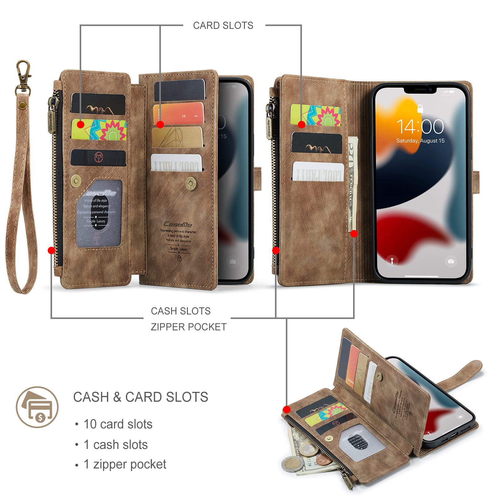 UEEBAI Leder-Handtasche deckt alle Ecken Ihres Telefons ab, einschließlich erhöhter Kanten, um Bildschirmkratzer zu verhindern. Sie können Ihren Ausweis, Kredit- oder Debitkarten, Führerschein, etwas Bargeld und kleine Notizen tragen, ohne Ihre sperrige Brieftasche zu nehmen. UEEBAI Handyhülle für iPhone 13 6.1 inch, Caseme Retro Reißverschluss Hülle PU Leder Weiche Klapphülle Magnetverschluss Kartenfach Standfunktion Geldbörse mit Trageband Schutzhülle - Wein Rot: : Elektronik & FotoWussten Sie Hochwertiges Material: Diese Handtasche ist aus hochwertigem, strapazierfähigem PU-Leder und einer verbesserten weichen Silikon-Innenschale. Kartenfächer und Standfunktion: Diese Brieftasche verfügt über 6 Standard-Kartenfächer + 1 Ausweisfach + 1 Bargeldfach + 1 Reißverschlussfach (sehr glatter Reißverschluss). Kartenfächer Diese Brieftaschen-Hülle enthält 8 Standard-Kartensteckplätze + 1 ID-Kartenfach + 1 Bargeldfach + 1 Reißverschlusstasche (sehr glatter Reißverschluss). Weiche stoßabsorbierende PU-Flip-Halterung deckt alle Kanten und Ecken ab und schützt Ihr Telefon vor Kratzern und Beschädigungen. Dieser starke Magnet bietet auch vollen Schutz, wenn Ihr Telefon versehentlich fällt. iPhone 13 Mini Lederhülle mit Ständer und Kartenhalter (Schwarz) ✔️ Webshop-Gütesiegel ✔️ Kostenloser Versand ✔️ Sichere Online-Zahlung M CASEME UEEBAI Schutzhülle für iPhone 13 6,1 Zoll , Premium PU Präzise Aussparungen: Diese Hülle ist dank der weichen Silikon-Innenschale einfach zu installieren und bietet einfachen Zugriff auf alle Funktionen (Lautsprecher/Ladeanschluss/Kamera), sodass Sie sie nicht entfernen müssen, wenn Sie Ihr Telefon verwenden. Iphone Wallet Leder UEEBAI Handyhülle Für IPhone 13 6.1 Inch, Caseme Retro Reißverschluss Iphone 7 Klapphülle Leder Wenn Sie irgendwelche Qualitätsprobleme mit unserer Hülle haben, zögern Sie nicht, unseren Kundenservice zu kontaktieren. Das Case aus robustem Kunstleder passt genau auf dein Apple iPhone 13 Mini und schützt durch das Portemonnaie-Design auch das Display. Kompatibel mit iPhone 13 6,1 Zoll; Bitte wählen Sie vor dem Kauf das richtige Modell/Größe Ihres Handys.