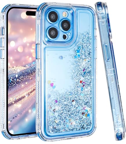 IPhone 13 Hülle Glitzer, 3D Bling Sparkle Treibsand Fließende Flüssigkeit Klar Transparent TPU Gel Silikon Stoßfest Schutzhülle Für IPhone 13 Cover Mädchen Blau