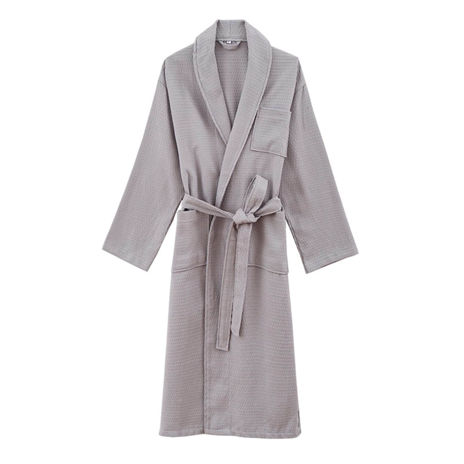 IQYU Damen Sauna Bademantel Waffelpique Lang, Morgenmantel Leicht