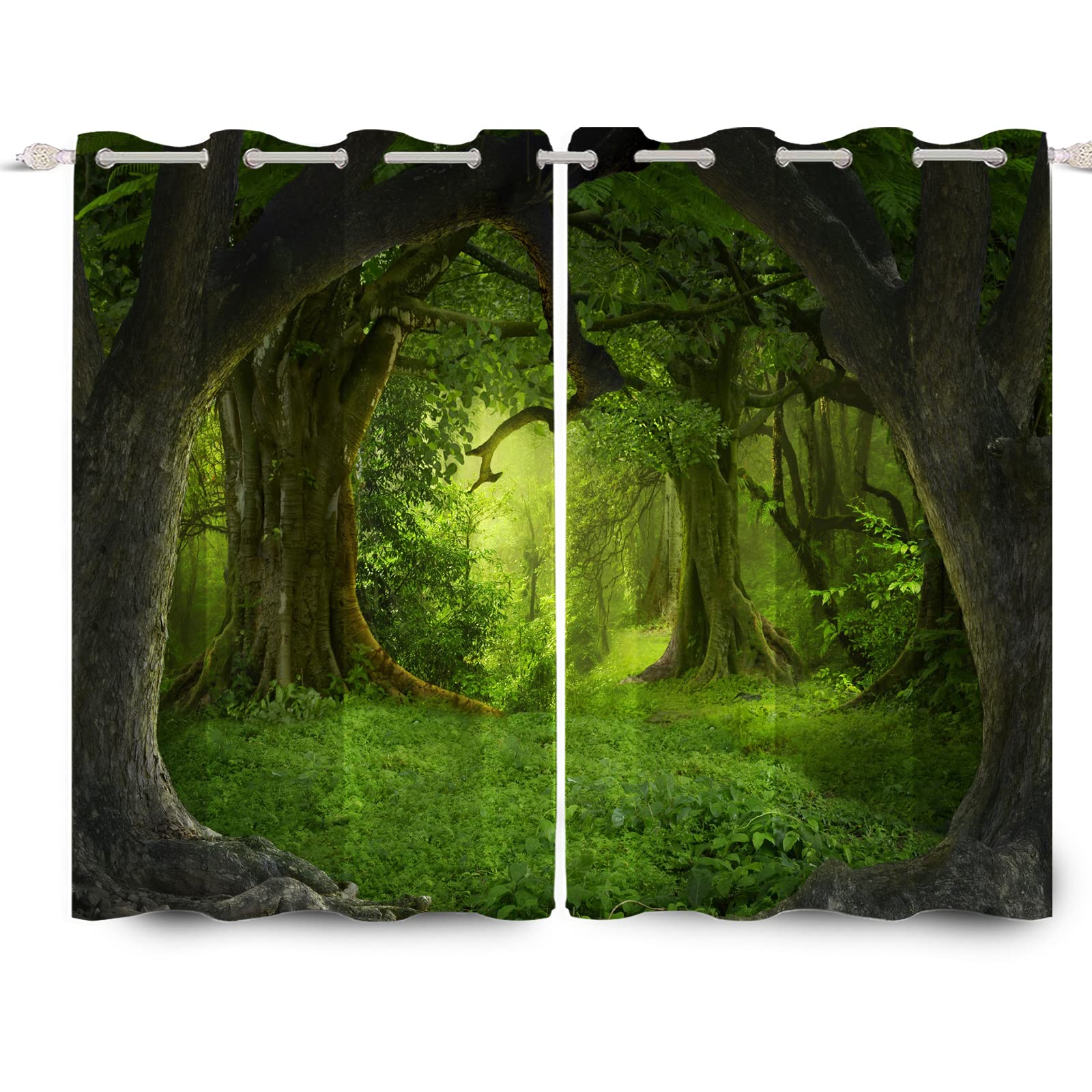 ABAKUHAUS Grün Rustikaler Gardine, Bambus-Bäume Im Wald, Schlafzimmer Kräuselband Vorhang Mit Schlaufen Und Haken, 280 X 245 Cm, Grün