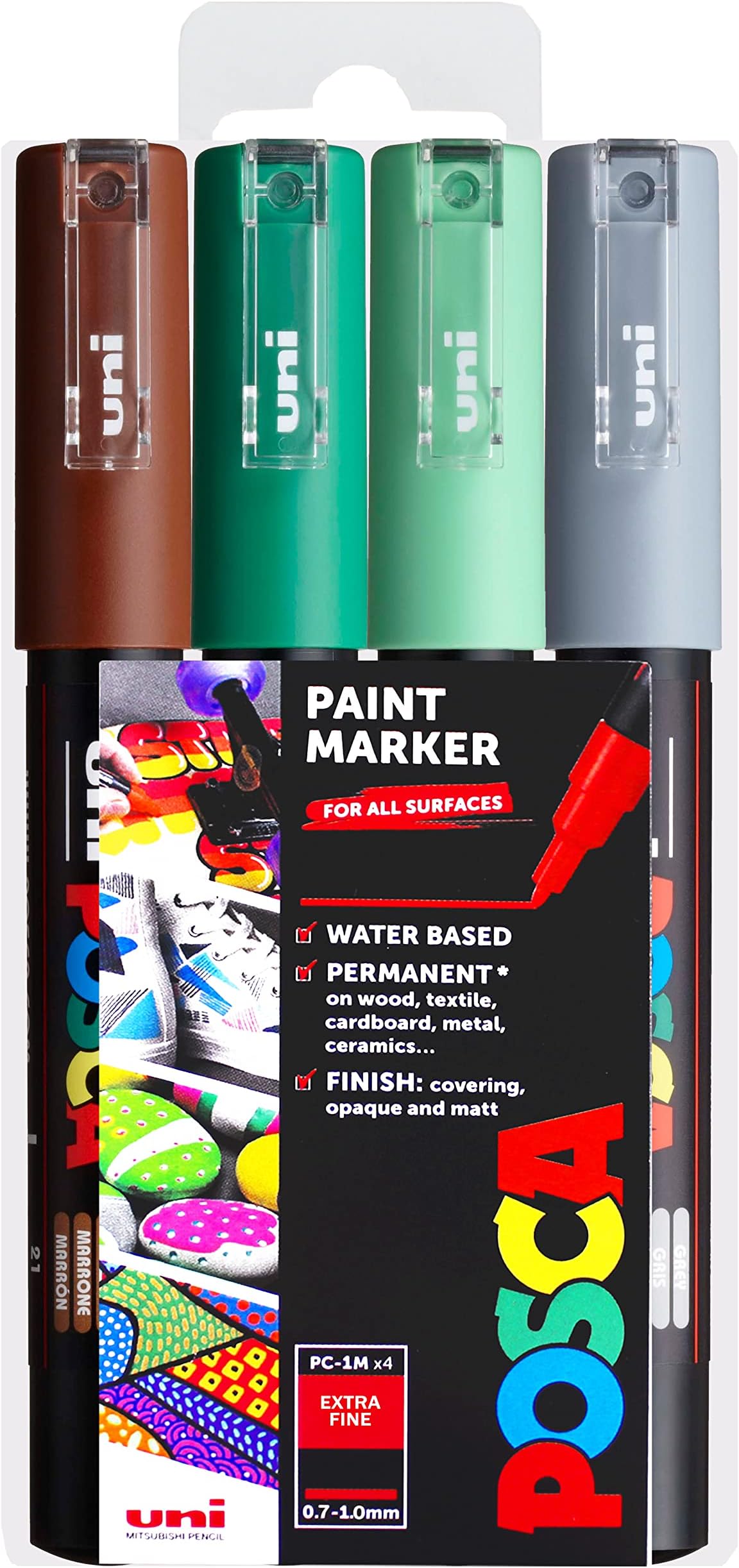 The water-based, non-toxic paint is smudge-proof and does not bleed. Combines accurate lines with high quality paint. Can be used on tracing paper, photo paper, cardboard, clay, stone, gravel, cement, wood, metal, fabrics, plastics, glass, leather and much more Kombiniert eine genaue Linienführung mit hochwertiger Farbe. Die wasserbasierte, ungiftige Farbe ist wischfest und verläuft nicht. uni Posca Marker PC-1MR ( Kalibrierte Spitze extrafein ) 0,7mm s POSCA,F801811, PC-1MR „Paint In A Pen"-Starterset, 0,7 Mm Ultra-feine Spitze, Wasserbasierte Filzstifte, 8 Farben, 8 Satz, Multi Posca Marker Die Tinte fließt durch einen einfachen Klick-Mechanismus und die Kugel im Stift mischt die Farbe für ein konstant zuverlässiges Ergebnis. Paint in a Pen?. -Starterset, 0,7 mm ultra-feine Spitze, wasserbasierte Filzstifte, 8 Farben, 8 satz, Multi. Weitere Produktdetails. In 8 Farben: Schwarz, Grün, Blau, Violett, Rot, Rosa, Gelb, Weiß