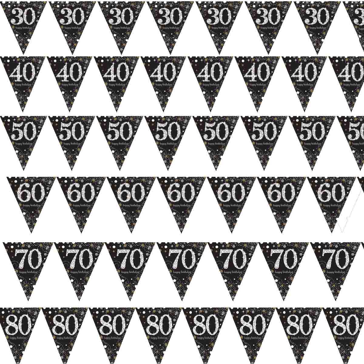GLITZER WIMPELKETTE In GOLD SILBER SCHWARZ - Geburtstag Jubiläum Party Deko Zahl