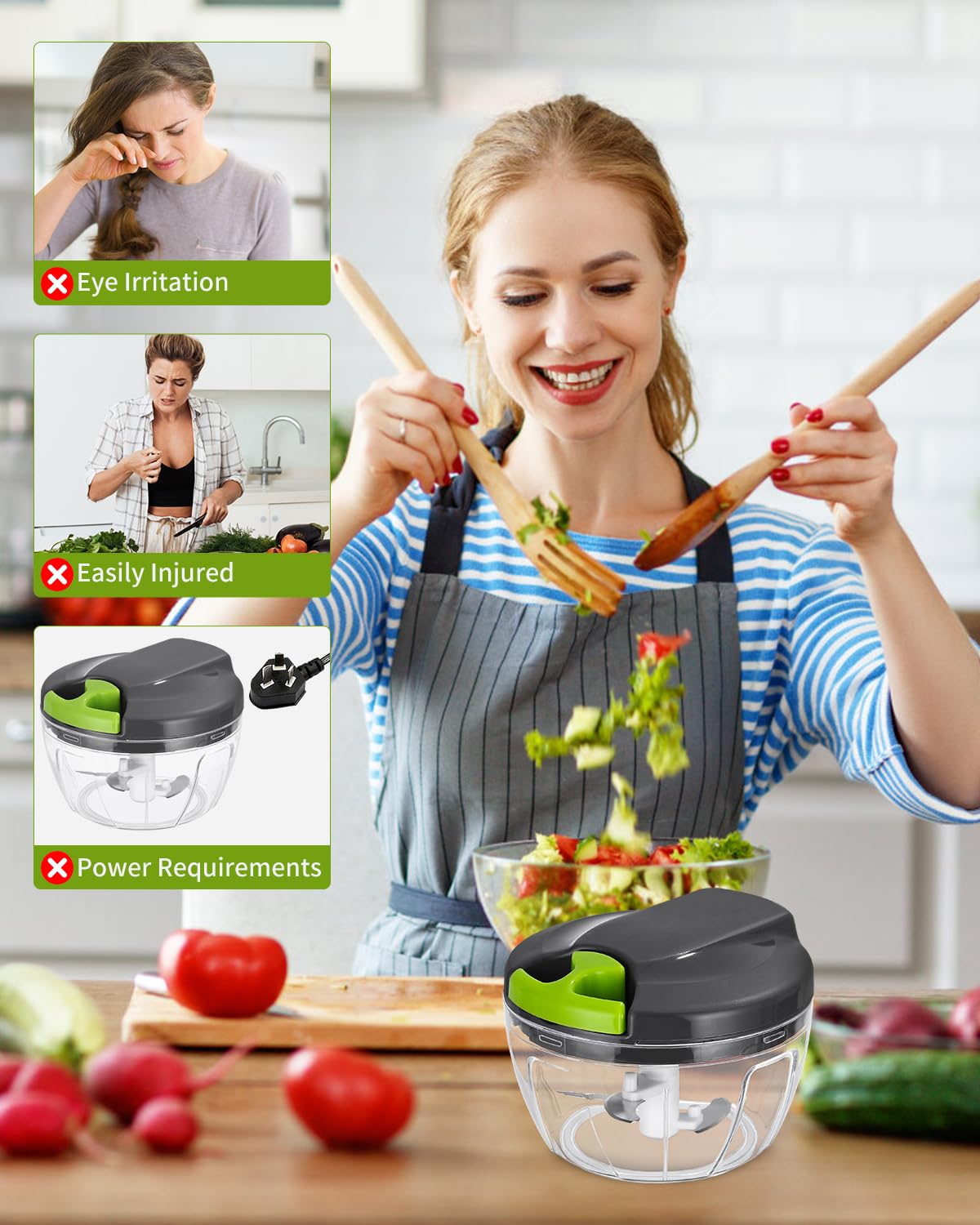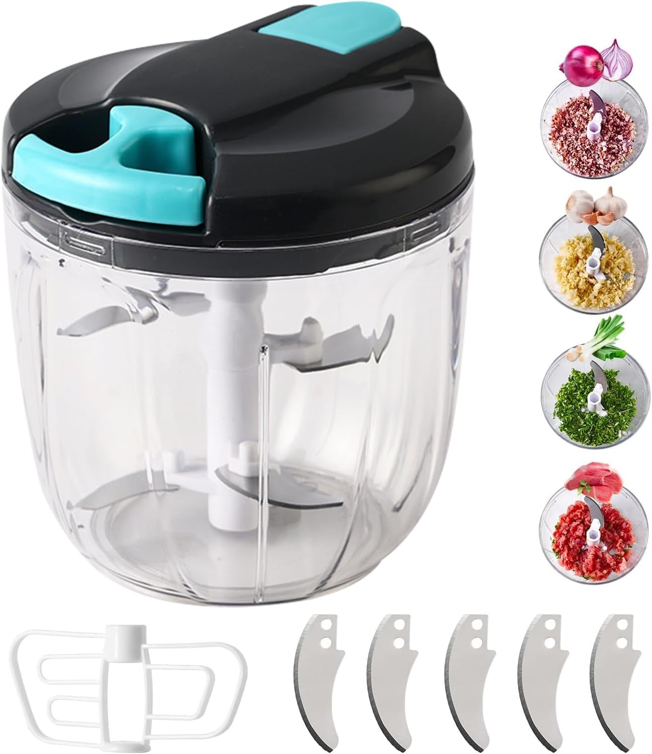 3+ austauschbarer Klingenaufsätze für Gemüse, Obst, Käse oder Fleisch., Platzsparend und reisefreundlich. Beste Zwiebelzerkleinerer 2024 – Keine Tränen mehr 🔹 Kurbelbetrieb für müheloses Schneiden: Präzises Zahnrad-Getriebesystem mit ergonomischer Drehkurbel – kein wiederholtes Ziehen erforderlich. Einhandbedienung für gleichmäßige Schnittergebnisse, ideal auch für harte Zutaten (Karotten, Nüsse etc., ). 🔹 Vielseitiges Zubehör-Set: Inkl. Perfekt für Salate, Pfannengerichte oder Babykost. 520ML Zwiebelschneider Manuell, Zwiebel Zerkleinerer Mit 3 Edelstahlklingen Gemüseschneider und Mixer Multizerkleinerer Kleine Gemüseschneider Zwiebelhacker für Zwiebeln,Gemüse, Obst Nicer Dicer Zwiebelschneider Manuell Mit 3 Edelstahlklingen Und 1 Mixer○ 520ML Gemüseschneider ○ Multizerkleinerer Manuell L ○ Onion Chopper Gemüseschneider Für Gemüse, Obst, Knoblauch Spiralschneider Gemüse Spülmaschinenfest* und hygienisch leicht zu reinigen (*Klingen empfohlen per Handwäsche). HAC24 Gemüsehacker Gemüseschneder Zwebelschneder Gemüse...