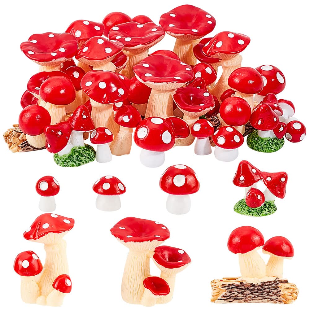 40 Stück Mini-Pilze Aus Kunstharz, Mini-Pilze In Rot Ornament Zum Pflanzen Von Plaketten Gartendekoration Gartendeko Fur Drauen 85300543
