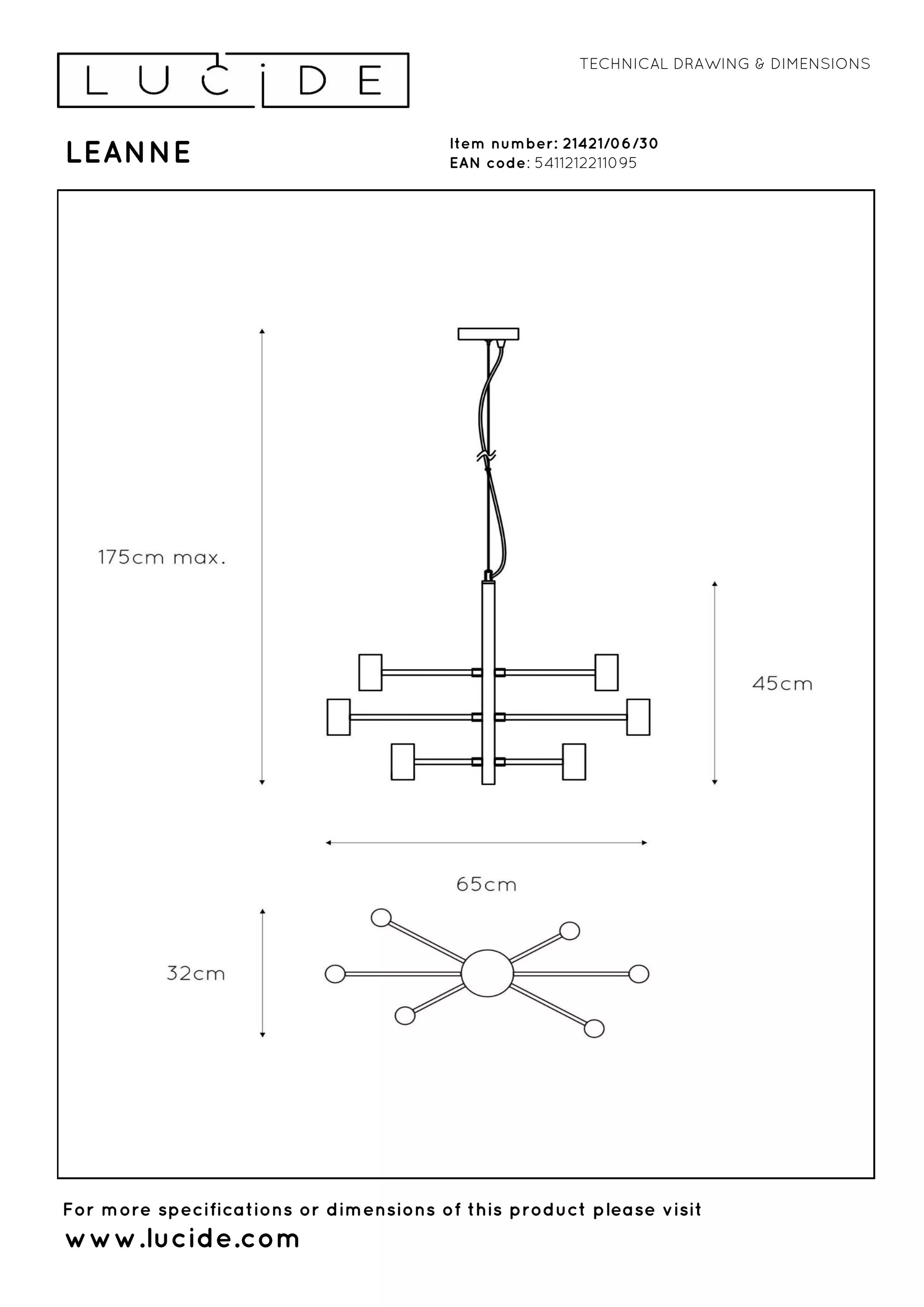 GOECO Deckenleuchte Vintage E27 Basis 6 Lichtern Deckenlampe Für Wohnzimmer Schlafzimmer Esszimmer Büro Gold Unabhängig davon, ob Sie sich für die Tischlampe, die Stehlampe, die Pendelleuchte oder die Wandlampe aus der Leanne-Serie entscheiden, können Sie sich einer hochwertigen Lichtlösung sicher sein ) - Dimmbaar Größe: L., 65 x B., 32 x H. 175 cm 2 Jahre Garantie auf der Leuchte / Passende Lichtquelle ist SKU: 49032/05/62Empfehlung! Diese Leuchte ist in der höhe verstellbar Geeignet für die Verwendung mit einer LED-Lichtquellen Bereits ab 233,60 € ✓ Große Shopvielfalt ✓ Testberichte & Meinungen ✓ | Jetzt Lucide Pendelleuchte Lionel in Schwarz E27 5-flammig schwarz günstig kaufen bei Lucide LEANNE Pendelleuchte Schwarz 21421/10/30 Kaufen Sie diese Leuchte zusammen mit mit der passenden Lichtquelle. Deckenlampe Hängend Lucide Wandleuchte Leanne In Schwarz E27 Schwarz Ab 14,21 € | Preisvergleich Bei Lucide Leanne 6xe27