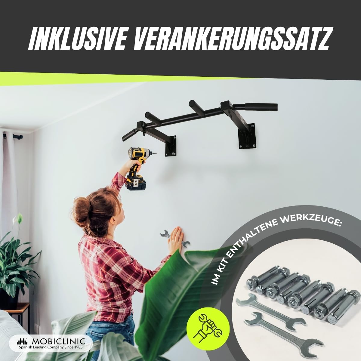 Pull Up Bar Klimmzugstange Wandmontage (Gebraucht) In Zürich Für CHF 5 – Nur Turnstange Indoor 💪 VIELSEITIGKEIT IM TRAINING: Diese Dip station ermöglicht mehrere Übungen, z., B. Optrekstang Wandmontage | K-Sport Queraltó, die als bestes spanisches KMU 2022 unter mehr als 3 Millionen Unternehmen ausgezeichnet wurde, gehört zur Grupo Bunzl, dem größten in mehr als 40 Ländern vertretenen und an der Londoner Börse notierten Vertriebsunternehmen mit einem Jahresumsatz von mehr als 14 Mrd., € 🔩 ROBUSTE UND SICHERE KONSTRUKTION: Die K3-Wand-Klimmzugstange multifunktional besteht aus hochwertigem Stahl, der Haltbarkeit und Widerstandsfähigkeit garantiert. Info zu diesem Artikel ?SICHERHEIT UND STABILITÄT: Diese wandmontierte Klimmzugstange ist für die Verankerung mit sechs Löchern für Stabilität und eine maximale Tragfähigkeit von 100 kg ausgelegt Verwenden Sie sie als Klimmzugstation, Liegestützstation, Dipstation oder Kraftstation 💪🏻GROßE VORTEILE: Der multifunktionale Kraftturm wird Ihnen helfen, große Vorteile zu erzielen. bietet seinen Kunden seit 1985 die beste Qualität und Zuverlässigkeit. Verwandeln Sie Ihr Zuhause in ein persönliches Fitnessstudio mit dieser vielseitigen Reckstange 🔧 EINFACHE UND SICHERE INSTALLATION: Das Set enthält alles, um die Wandreck sicher an einer festen Wand zu installieren. Ideal auch als Klimmzugstange türrahmen, um vielseitige Workouts zu Hause zu absolvieren Diese Wandreck bietet Sicherheit und Stabilität auch bei extremen Trainingseinheiten , ✔️MOBICLINIC S., L. Produktbeschreibung des Herstellers Dominierte bar K3 Wie hoch ist die maximale Belastbarkeit der Stange? Die Mod K3 Klimmzugstange kann dank ihrer hochwertigen Stahlkonstruktion bis zu 250 kg tragen, was Stabilität und Sicherheit beim Training gewährleistet. Sie bieten einen sicheren und bequemen Halt bei anspruchsvollsten Übungen, was die Kontrolle und Stabilität verbessert. ist sie einfach zu montieren? Ja, sie wird mit einem Montagesatz geliefert, um sie an der Wand zu befestigen. Die einfache Installation und Anpassung an jedem Raum im Haus. Die Herstellung aus hochwertigem Stahl sorgt für Langlebigkeit. Mit der Klimmzugstange Mod K3 verwandeln Sie Ihr Zuhause in ein persönliches Fitnessstudio und verbessern Ihre Kraft und Ausdauer effizient und sicher Diese Eigenmarke der Grupo R.