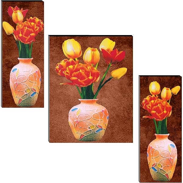 Indianara Floral Rectangular Synthetic Wood Art Painting (35 Cm X 28 Cm X 3 Cm, Set Of 3, Indr1056