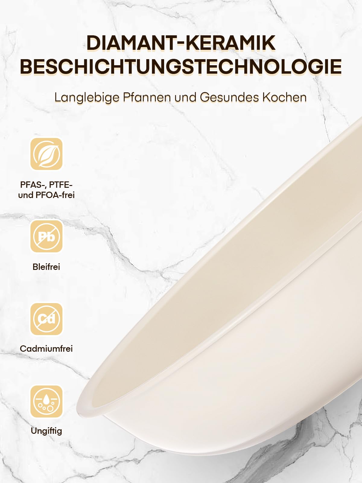 Hochwertige Materialien und Design: Der Boden aus Aluminiumlegierung sorgt für schnelles und gleichmäßiges Erhitzen. Abnehmbarer Griff: Mit einem abnehmbaren Griff ist das pfanne induktion stapelbar und spart bis zu 75 % Platz. Diamant-Keramik-Antihaftbeschichtung: Unsere Antihaft-Bratpfanne werden mit dem Diamant-Keramik-Beschichtungsverfahren aufgetragen und sind viel härter als herkömmliche beschichtete pfanne. Kompatibel mit allen Herdarten: Unsere bratpfanne induktion funktionieren sicher auf allen Herdarten, einschließlich Induktion, Gas, Elektro, Keramik, Halogen und sind ofenfest bis 220 °C (ohne Griffe). Lieferumfang: 20CM Pfanne, 24CM Pfanne, 28CM Pfanne und ein abnehmbarer Griff Unsere pfanne sind spülmaschinenfest und ofenfest bis 220 °C, was Ihnen großen Komfort beim Kochen bietet und Ihnen Zeit beim Kochen spart 1 Pfanne Induktion 2 28CM Pfanne 3 24CM Pfanne 4 20CM Pfanne, 1 Camping 2 Geschirr 3 Backofenfest, 1 Keramikbeschichtung 2 Keramikbeschichtung Pfanne Induktion 3er Pfannenset Induktion Set Antikratz Bratpfannen Pfanne Antihaft Induktions-Bratpfanne ø 20 Cm, ø 24 Cm, ø 28 Cm Wmf Pfanne Klicke hier auf diesen Link, um mehr über den FOHERE Dörrautomat zu erfahren und ihn selbst zu testen! Er ist eine lohnende Investition für alle, die Wert auf gesunde und selbstgemachte Lebensmittel legen Gesundes Kochen: Die Keramikpfannen sind mit einer Diamantkeramik-Antihaftbeschichtung versehen, die frei von PTFE, PFOA, PFAS und anderen giftigen Materialien ist. FOHERE Pfanne Induktion, 4-Teiliges Pfannenset Induktion mit abnehmbarem Griff, Bratpfanne 28/24/20 CM für alle Herdarten, Ceramic Antihaftbeschichtung Pfanne, Backofenfest, Spülmaschinenfest, Grau Hinweis: Wir empfehlen, den Griff beim Kochen über offener Flamme abzunehmen, um die Lebensdauer des Griffs zu verlängern Bratpfannen Set Elegance 3-tlg. 20/24/28 cm mit Antihaftversiegelung - online bei RÖSLE GmbH & Co. KG kaufen