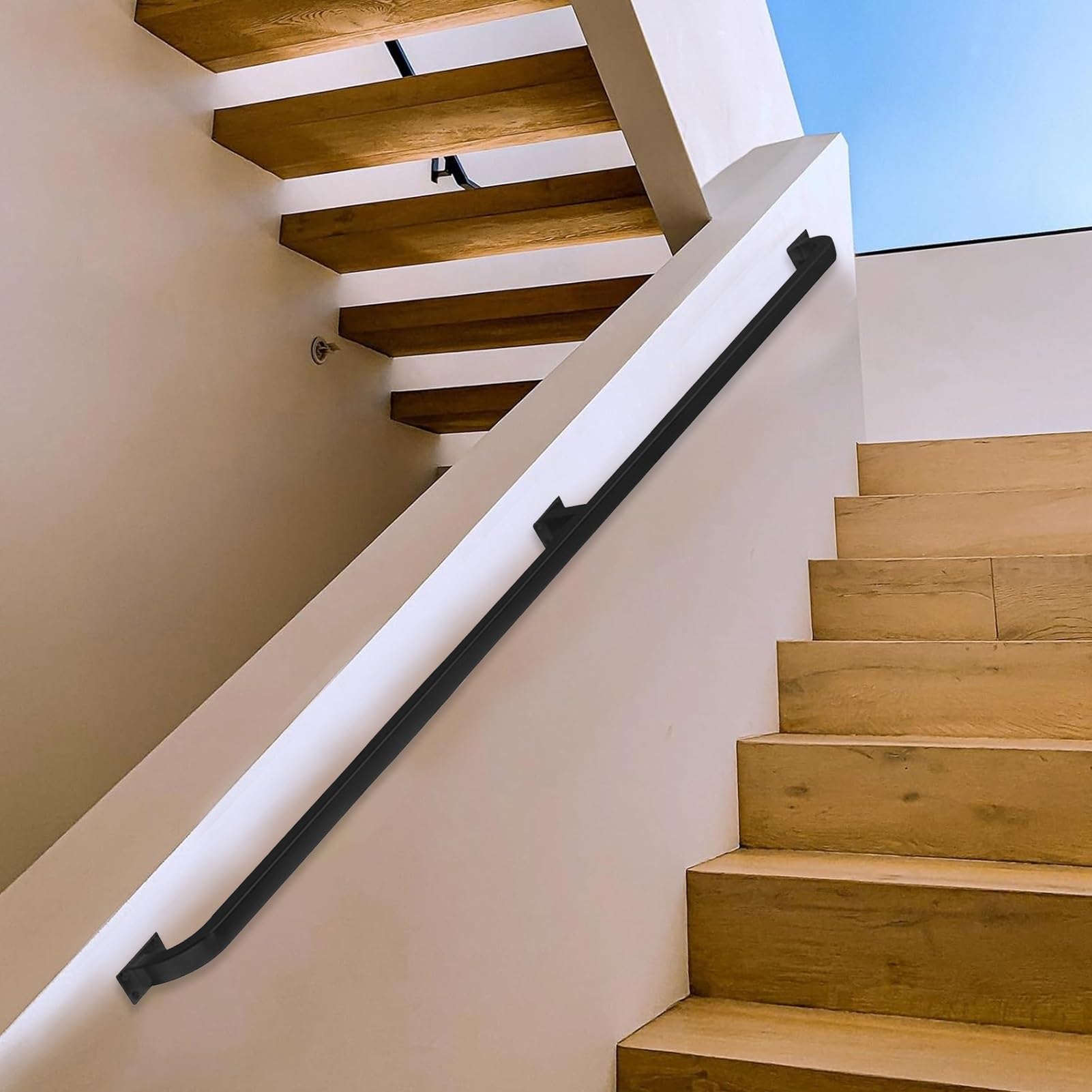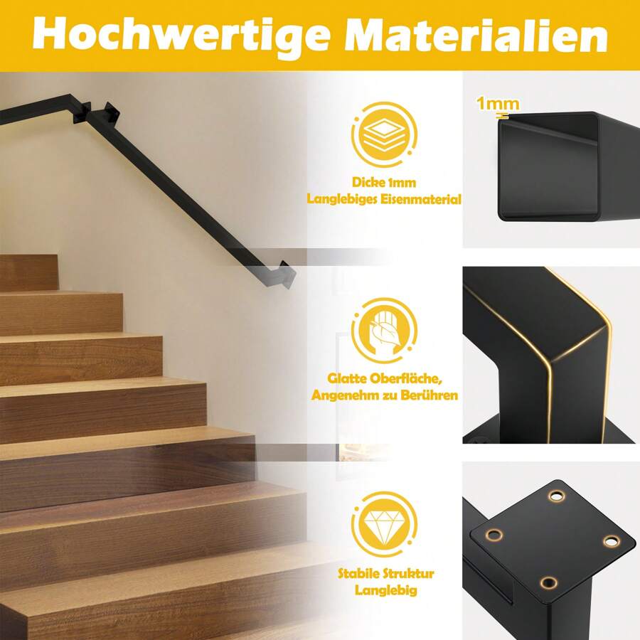 Treppen Handlauf Geländer Set, Treppen Komplettset Aus Schwarzem Metall Für Den Innenbereich, Loft, Villa, Korridor, Rutschfeste Treppengeländer, Stützstange Für Den Außenbereich/60 Cm (2 F