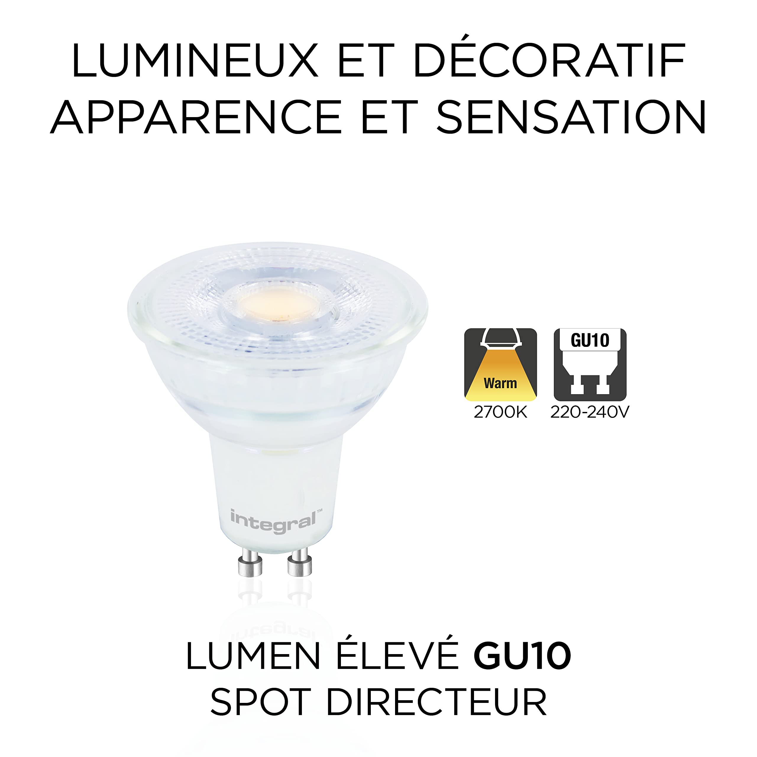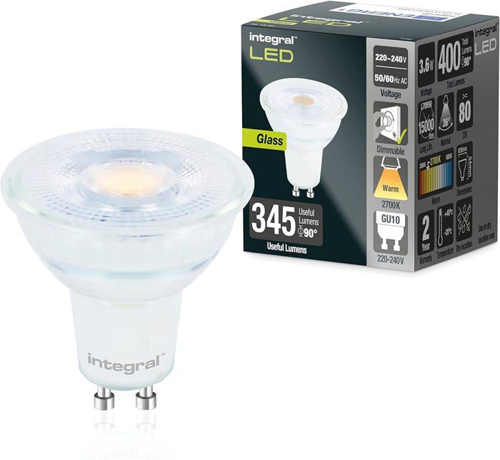 Integral LED 5 PACK GU10 Warm 2700K, 400LM, 3.6W Entspricht 50W Dimmbare Lampe Energieeffizient Und Ideal Fuer Spotlight Armaturen Und Downlights In Badezimmern, Kuechen, Wohn Und Schlafzimmern 4810467897