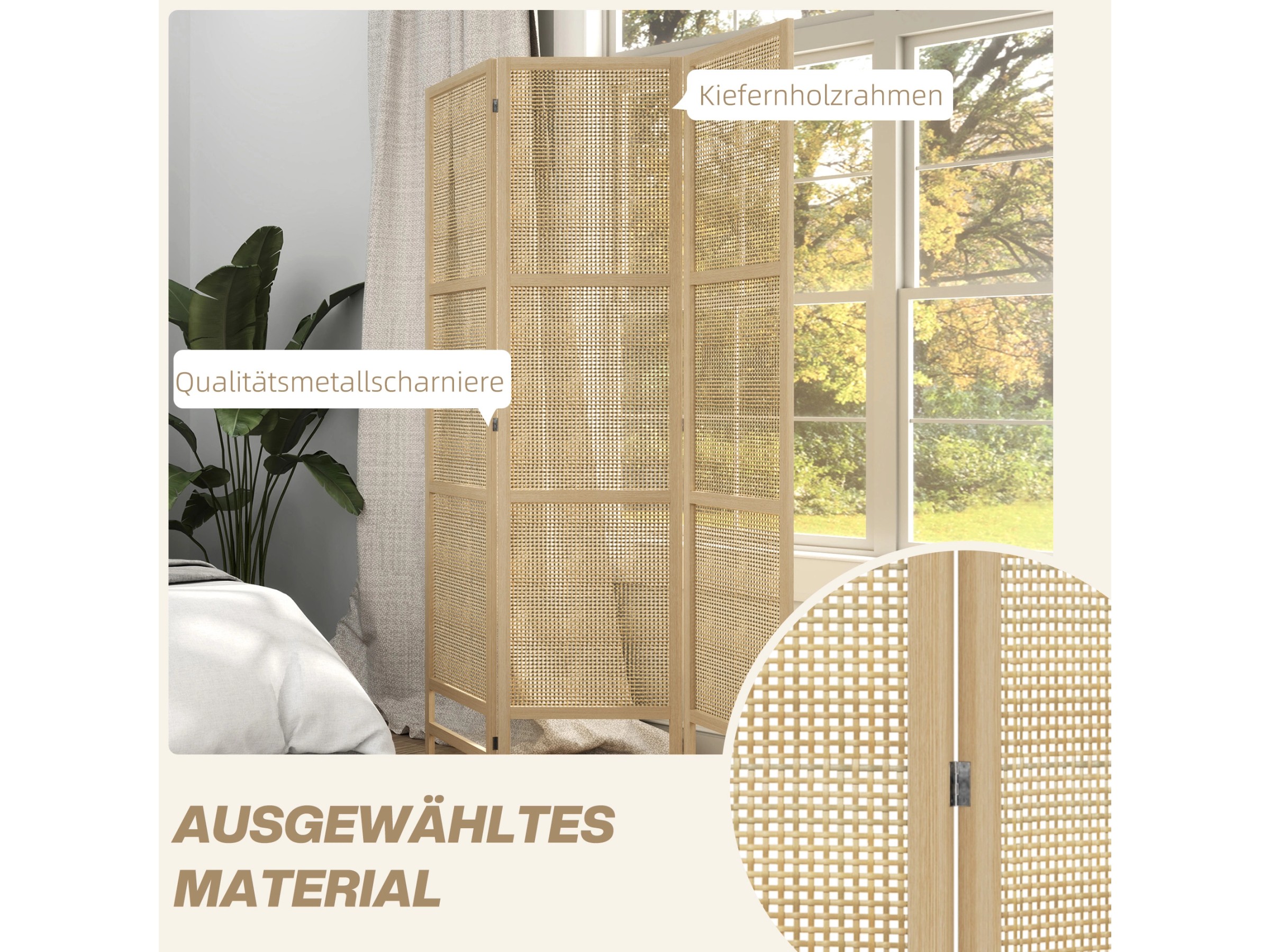 Preisvergleich für Relaxdays - Paravent Raumteiler, HxB: 170x160 cm... NATÜRLICHER TON: Mit dem Holzrahmen und dem Geflecht aus Bambus bringt die Trennwand einen natürlichen Touch in Ihr Wohnzimmer, Schlafzimmer, Heimbüro usw. Kein Zusammenbau erforderlich, sofort einsatzbereit! Maße der einzelnen Paneele: 45 x 180 cm. Bei Nichtgebrauch kann dieser Raumteiler einfach zusammengeklappt und verstaut werden. Bambus Raumteiler HOMCOM Paravent Interieur Aus Holz 3 Paneele 135 X 180 Cm Faltbarer Raumteiler Trennwand Fuer Wohnzimmer Schlafzimmer Haus, Naturholz 4812623024 Paravent Bambus HOMCOM Paravent 3-teilig 135 x 180 cm Raumteiler Trennwand, Faltbar Raumtrenner Stellwand Sichtschutz für Wohnzimmer Braun - Finden Sie alles für ihr Zuhause bei . Gratis Versand durch schon ab einem Bestellwert von 29 Einfache und schnelle Montage: bebilderte Aufbauanleitung liegt bei – komplett ausgeklappt: 135 x 1,4 x 180 cm (L x B x H). Einfach zu verstauen: Dieser Raumteiler ist durch 6 starke und langlebige Metallscharniere verbunden. Stabile Struktur: Dieser Raumteiler aus natürlichen Materialien hat eine Struktur aus Kiefernholz, Bambus und Baumwollfäden. Ideal für Schlafzimmer, Wohnzimmer, Büro usw. Darüber hinaus sorgen die Scharniere für zusätzliche Stabilität und ermöglichen ein reibungsloses Ein- und Ausklappen. Lassen Sie sich vom Charme dieses wunderschönen Raumteilers mit 3 Paneelen aus Tannenholz, Bambus und geflochtenen Papierfasern im natürlichen Stil verzaubern. Unsere Raumteiler bieten eine harmonische und originelle Optik und bereichern Ihr Zuhause. ELEGANTER RAUMTEILER - Dieser 3-teilige Raumteiler schafft einen privaten und unabhängigen Raum in jedem Raum Ihres Hauses. Sofortiger Einsatz möglich, keine Montage erforderlich Paravent Transparent – Die 15 besten Produkte im Vergleich - The Digital Talents Paravent im Detail- Gesamtgröße ausgeklappt H x B x T: ca