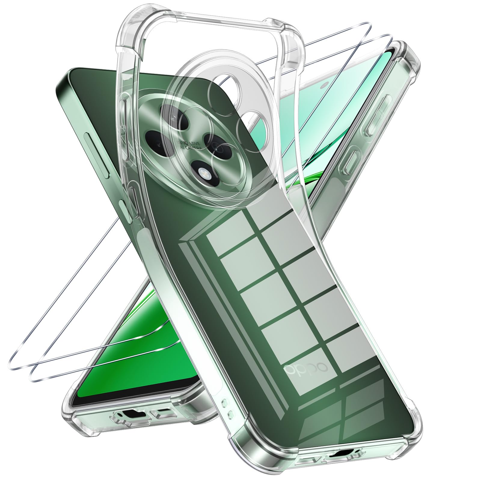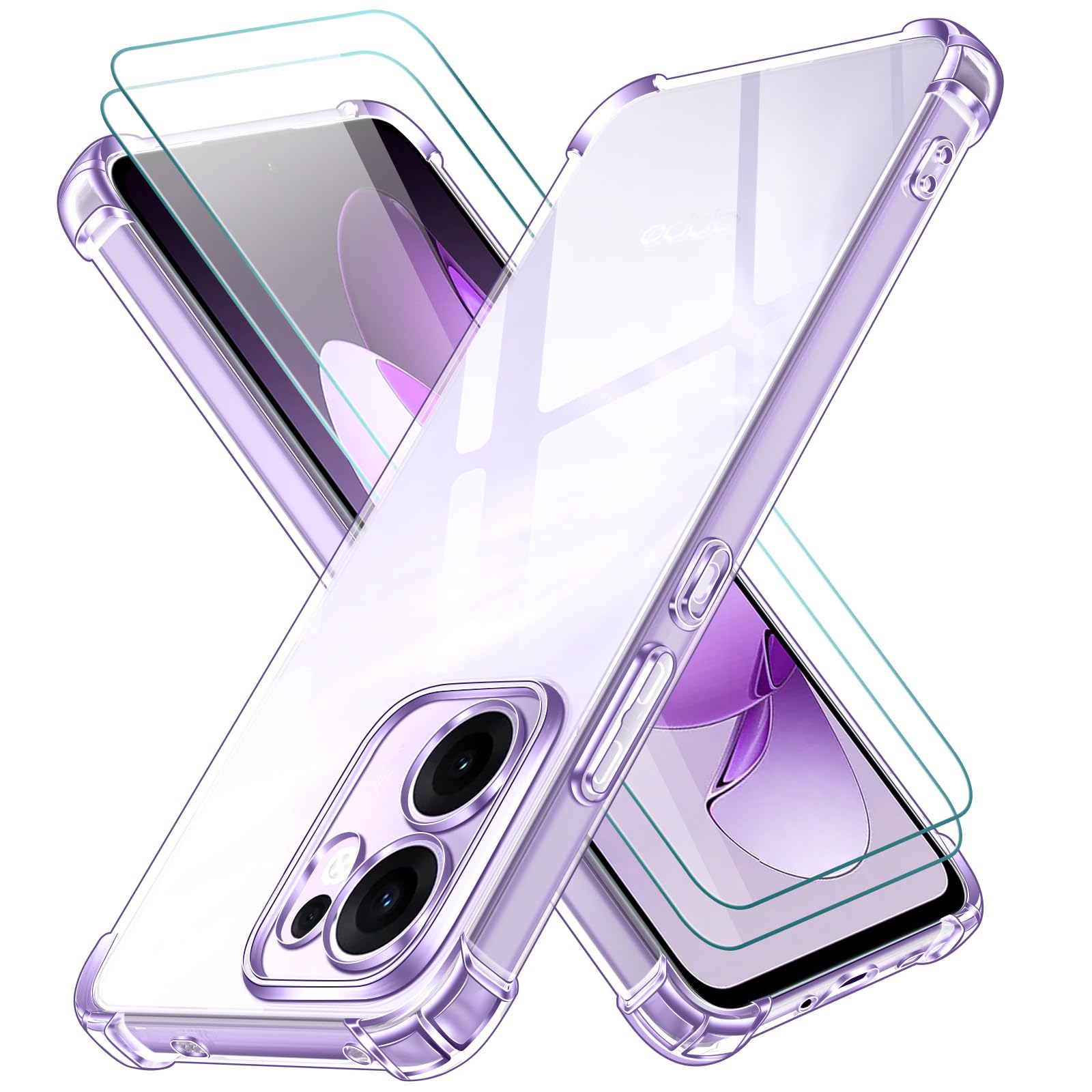 Ivoler Klar Hülle Für Oppo Reno 12F 4G / 5G / Oppo Reno 12 FS 4G / 5G, 1 Handyhülle Mit 2 Stück Panzer Schutz Glas, Transparent Stoßfest Schutzhülle Weiche TPU Silikon