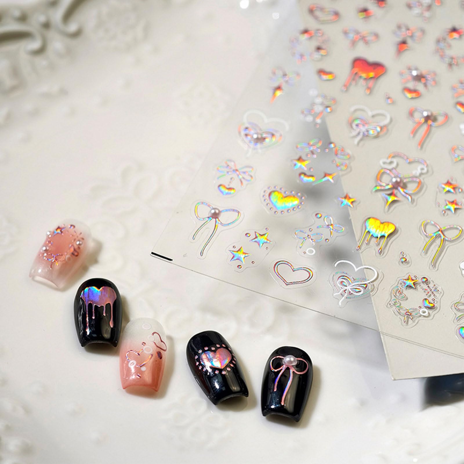Einfach zu verwenden: Selbstklebende Nagelsticker, geeignet für die direkte Verwendung auf Fingernägeln und Acrylnägeln DIY-Nagelkunst Einfach zu verwenden: Selbstklebende Nagelsticker, geeignet für die direkte Verwendung auf Fingernägeln und Acrylnägeln Nagelsticker-Set: Bietet eine Vielzahl von Mustern zum Verwenden und Ersetzen KEYRI 18 Blatt Nagelaufkleber für Nagelkunst und Nagelstudio Selbstklebende Schleife Stern Herz Nagelzubehör Zartes Nagelkunst-Design Dekorationszubehör für Frauen und Mädchen (Verschiedene Formen Nagelsticker Sterne JMEOWIO 3D Nagelsticker Blumen Schleife Nail Art Sticker Schleifen Selbstklebend Einfach zu entfernen: Das Entfernen der Nagelsticker beschädigt Ihre Nägel nicht, sodass Sie Ihren Stil problemlos regelmäßig ändern können JMEOWIO Nagelsticker Herz Linien Blumen 9 Blatt Nail Art Sticker Selbstklebend Nagelaufkleber Bunte Dekoration Nageldesign Zubehör Beschreibung Verwendung: Die Nagelsticker sind selbstklebend