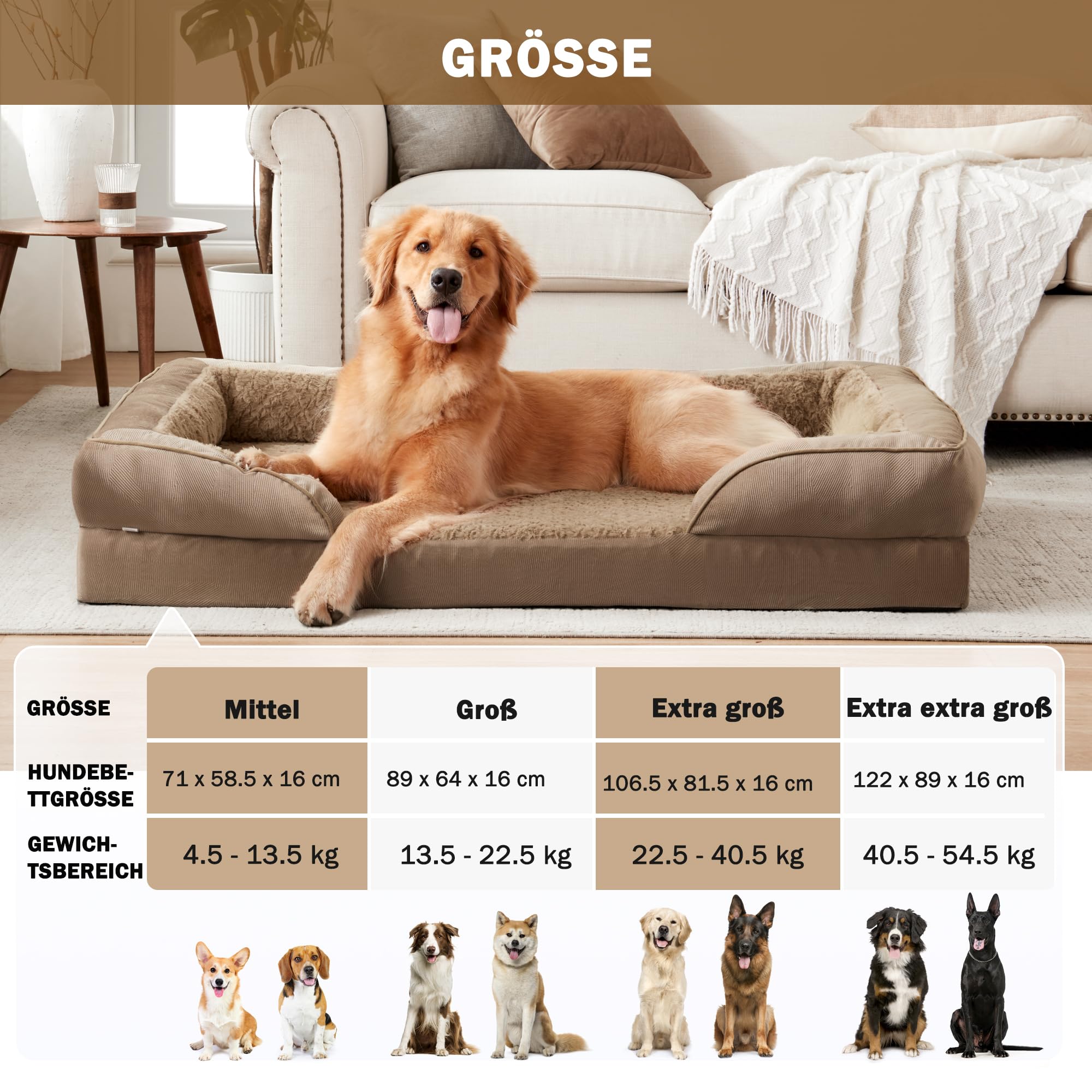 JOEJOY Großes Orthopädisches Hundebett, Großes Waschbares