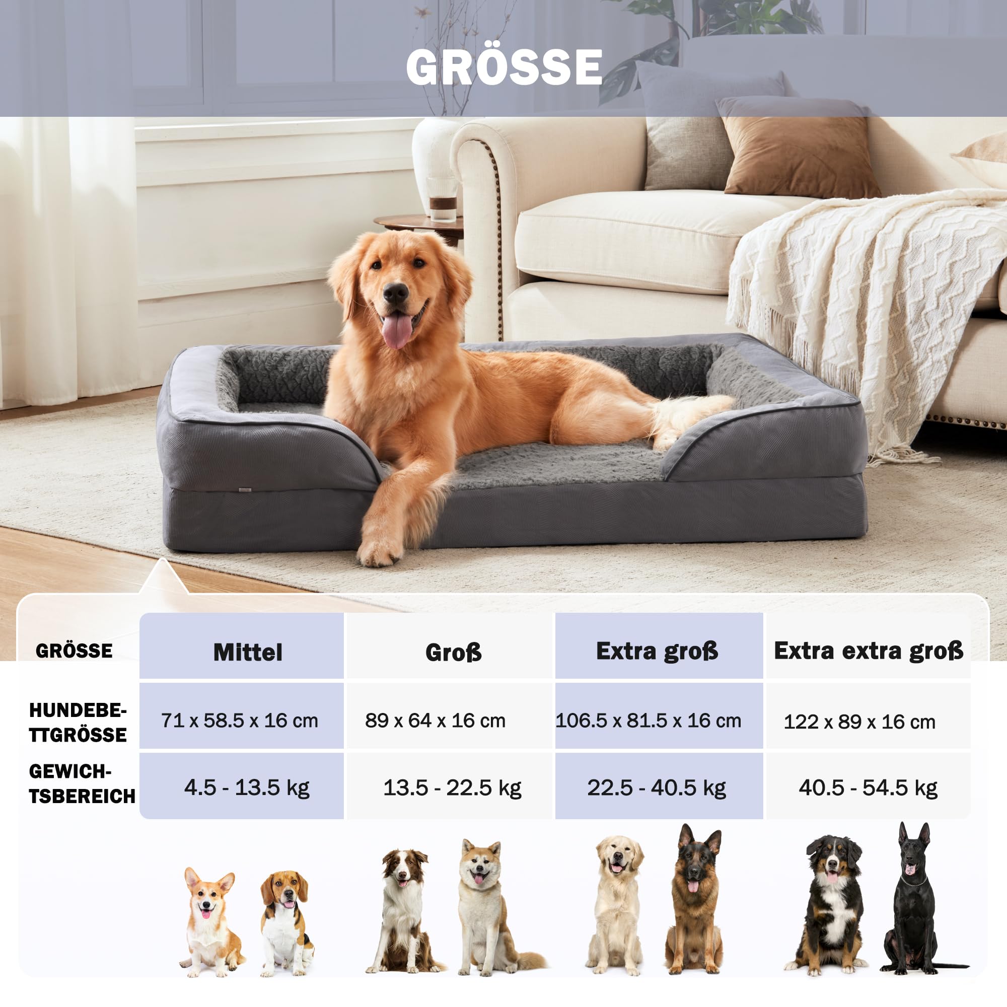 Die beste Geschenkidee: Verbessern Sie den Schlafbereich Ihres Haustieres mit unserer stilvollen Hundematratze, die in einer Vielzahl von bezaubernden Mustern erhältlich ist. Modernes Karomuster-Design: Unser Hundebett verfügt über eine Plüsch-Sherpa-Oberseite und eine rutschfeste Unterseite, um Hunden zusätzlichen Komfort und Sicherheit zu bieten. Wenn Sie Fragen zum Produkt haben, kontaktieren Sie uns bitte, und wir werden Ihnen innerhalb von 24 Stunden eine zufriedenstellende Lösung geben. Knuffelwuff Orthopädisches Hundebett JOEJOY Mittelgroß Orthopädisches Hundebett, Mittelgroßes Waschbares Katzenbett Hundekissen Mit Memory Schaumstoff Waschbar Abnehmbar Wasserdichte Fütterung Hundebett Orthopädisch Grau Joyelf Hundebett Dadurch bleibt unser Hunkörbchen an Ort und Stelle, selbst auf glatten Bön. Es besteht aus wasserdichtem Material, das rutschfest und schmutzabweisend ist. Modisches und warmes Hunkörbchen Unser Hunbett mittelgroße hun verfügt über ein stilvolles sign mit einer abgesenkten Vorrseite, die n Einstieg für Ihren Hund erleichtert Abnehmbarer und maschinenwaschbarer Bezug: Dieses extra große Hundebett ist mit hochwertigen L-förmigen Reißverschlüssen ausgestattet, mit einem abnehmbaren und waschbaren Bezug. (Hinweis: Schaumstoff kann nicht gewaschen werden) Das spezielle und niedliche moderne Karomuster-Design ist eher im Einklang mit der Zoologie, bietet eine beruhigende und angstreduzierende Wirkung und bietet Ihrem pelzigen Freund einen idealen Ruheplatz. Das Hundebett kann als Hundekäfig, Hundekissen, Hundematratze oder in Kisten und Haustierhäusern verwendet werden und sogar als Hunde-Reisebett in Ihrem Auto oder LKW dienen. Orthopädisches Hundebett: Das große Hundebett ist mit einem 7,6 cm dicken, hochdichten Eierkistenschaum ausgestattet, der hilft, das Gewicht unserer Hunde gleichmäßig zu verteilen und unseren Hunden eine starke Skelett- und Gelenkunterstützung zu bieten, um Gelenkschmerzen und Arthritis effektiv zu lindern und einen tiefen und ruhigen Schlaf zu fördern. Joejoy Hundebett Mittelgrosse Hunde Hund B0b1vd18gw Preisvergleich Das Hundebett „JOEJOY" für mittelgroße Hunde ist weich und bequem und hat eine beruhigende Wirkung. Es verfügt über einen flauschigen Überzug, der waschbar und rutschfest ist und sich für Hunde bis zu 14 kg eignet
