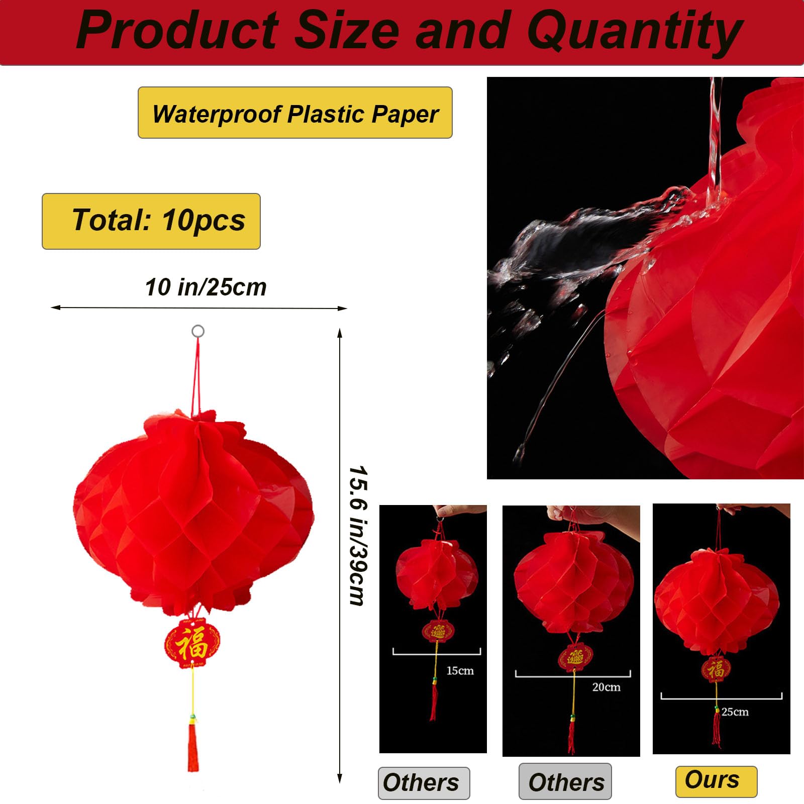 【Vielseitige Hängedekorationen】 Ideal für eine Reihe von Anlässen, einschließlich Chinesisches Neujahr 2025, Laternenfest, Weihnachten, Hochzeiten und Geburtstagsfeiern, unsere chinesischen Laternendekorationen verschönern jede Veranstaltung und verleihen Ihren Feiern Freude und Frieden. Zur Feier Des Chinesischen Neujahrs Im Jahr 2023 Wurden Rote Papierlaternen In Den Vordergrund Des Paifings Gezeichnet 2md416n 【Festliche chinesische Neujahrsdekorationen】Feiern Sie das Frühlingsfest 2024 mit unseren lebendigen roten chinesischen Laternen, die Glück und Wohlstand symbolisieren, perfekt für eine unvergessliche Atmosphäre für Ihre Familienfeiern und Büropartys. Verwendet werden andere Anlässe. Weil der unbezahlte Streit nicht automatisch geschlossen wird und wir ihn möglicherweise ignorieren. [Hochwertiges Material]: Diese chinesischen Neujahrsdekorationen 2024 bestehen aus hochwertigem Vliesstoff und sind langlebig Diese Papierlaternen können leicht montiert und demontiert werden, wodurch sie perfekt für den wiederholten Gebrauch bei verschiedenen Feiern das ganze Jahr über geeignet sind. Komplettes rotes Papierlaternen-Set: Dieses Set enthält 10 hochwertige 25,4 cm große chinesische Laternen, die Ihnen reichlich Dekorationen bieten, um Ihre Räume für die Weihnachtszeit zu schmücken und Ihre Einrichtung mit schönen und traditionellen chinesischen Elementen zu verschönern. Verleihen Sie Ihrem Frühlingsfest, Ihrer Hochzeit, Ihrer Geburtstagsfeier einen Hauch von Tradition mit unserer chinesischen Neujahrsdekoration 2024. Mit aufwendigen Designs und schönen Farben vermitteln diese hängenden Ornamente gute Wünsche und Glück 10 X Hängende Dekorationen für Das Chinesische Neujahr 2024 Bild von porzellan, fett, glücklich - 235752289