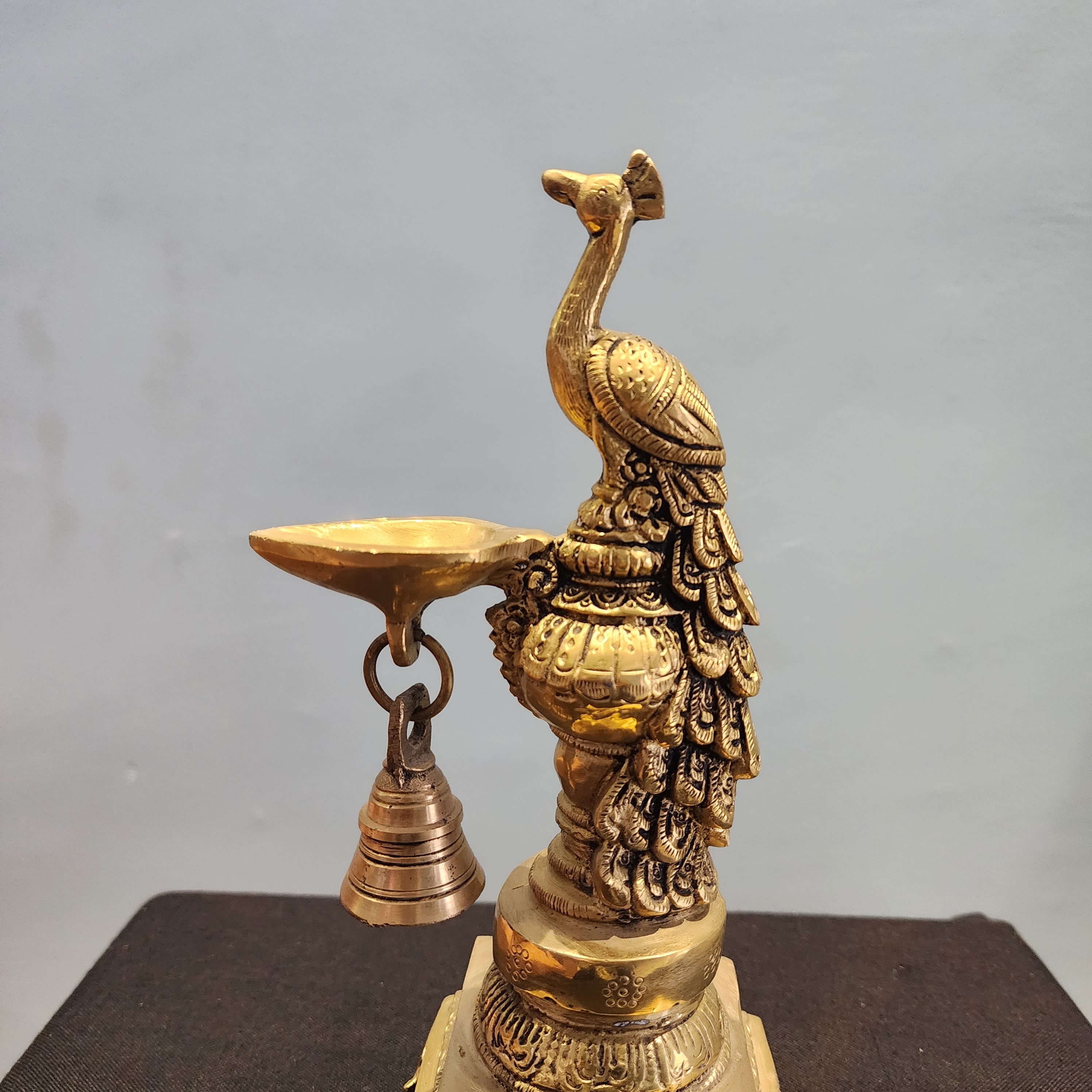 Jaszz Art Öldocht Diya Mit Pfauen-Design, Messing (Antik-06