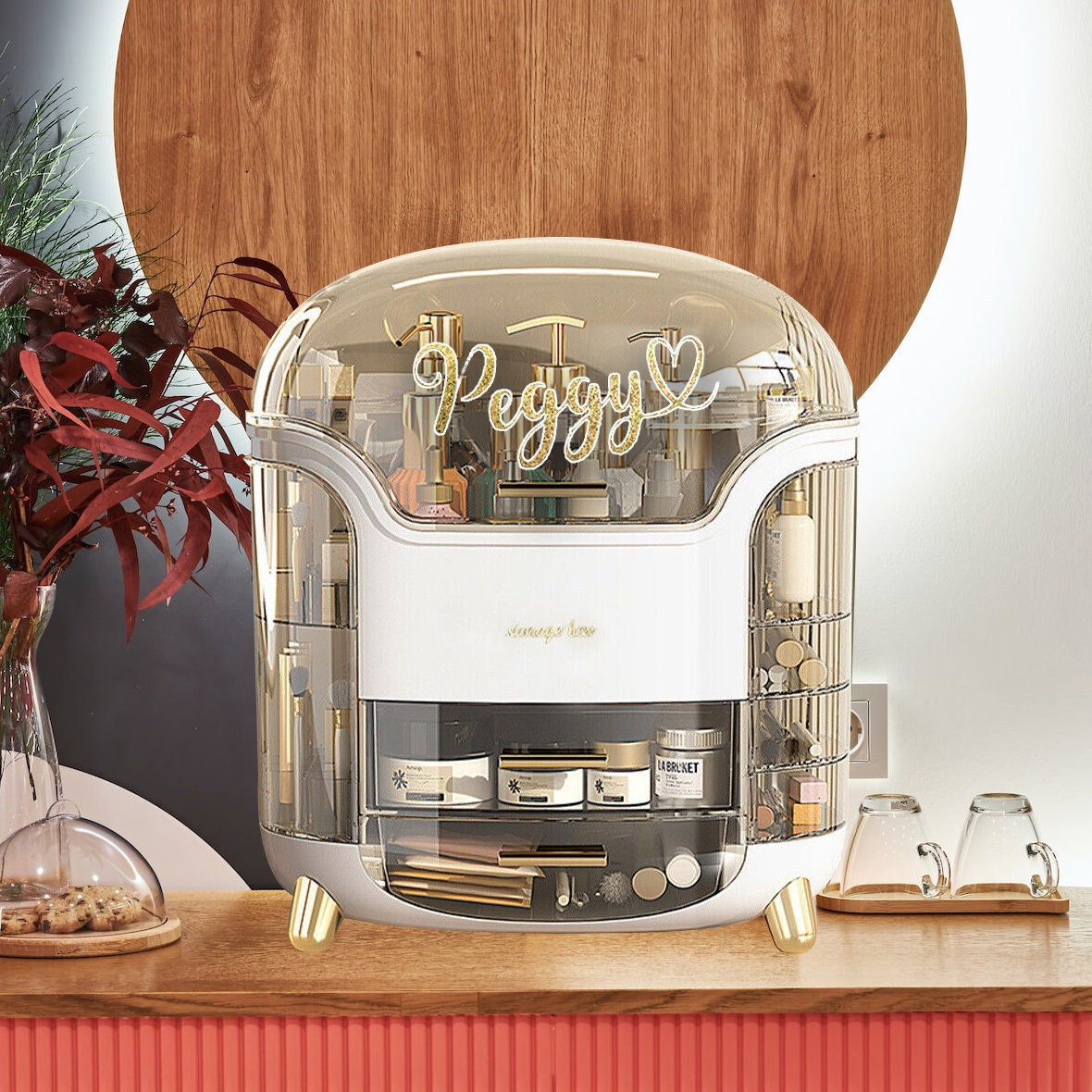 JessLab Schubladen Organizer, Acryl Make-up Organizer Kosmetik Aufbewahrung Schmuck Display Für Schreibtisch Kleiderschrank Badezimmer Waschtisch Arbeitsplatte Transparent (1+1 Compartment