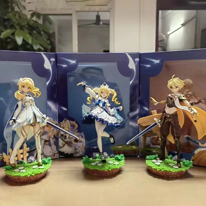 Jilijia Anime Hutao Figure Lumine/Aether/Barbara/Ganyu Action Figures PVC Cartoon Fighting, Sitting, Standing Posture Figurine Toy Model Statue Ornament