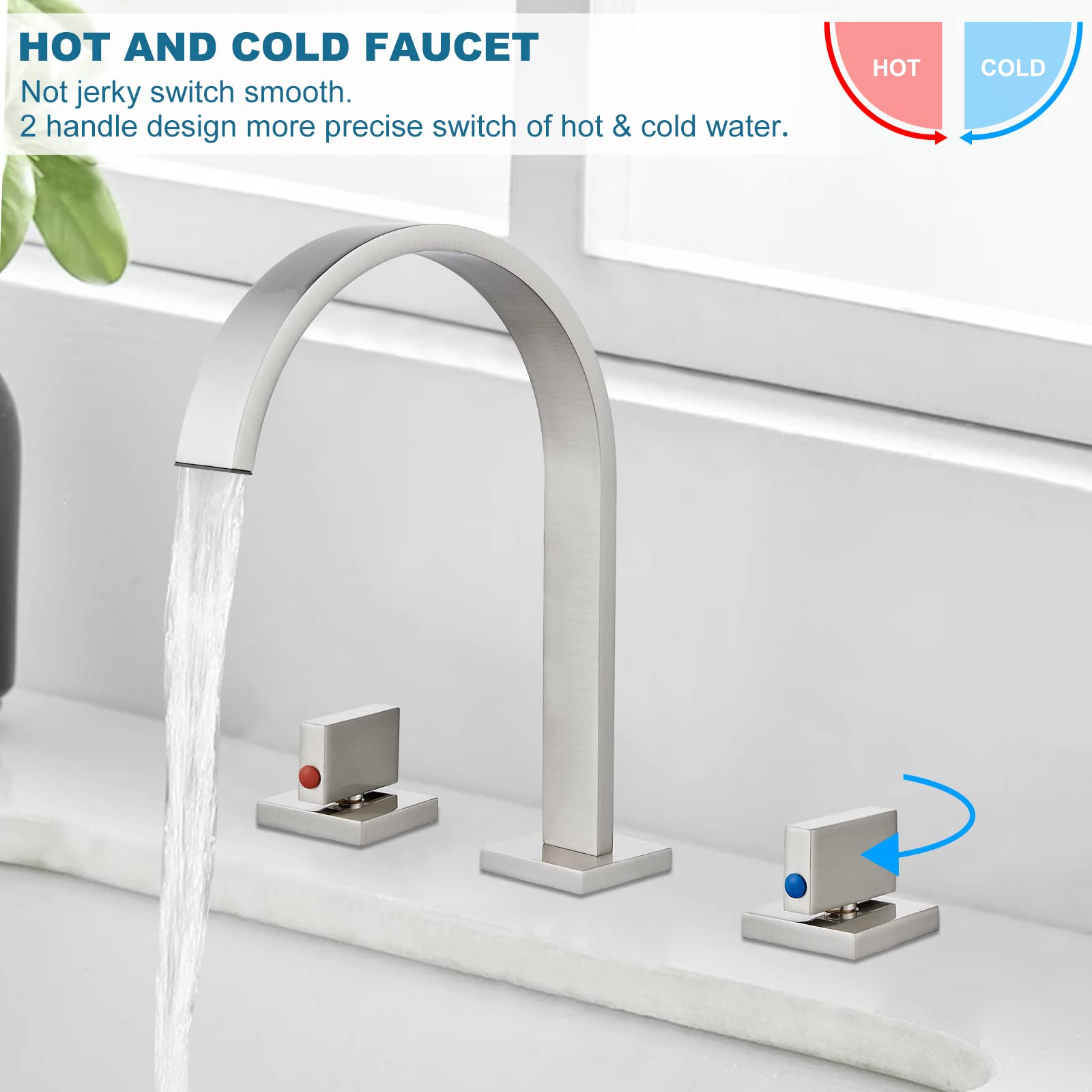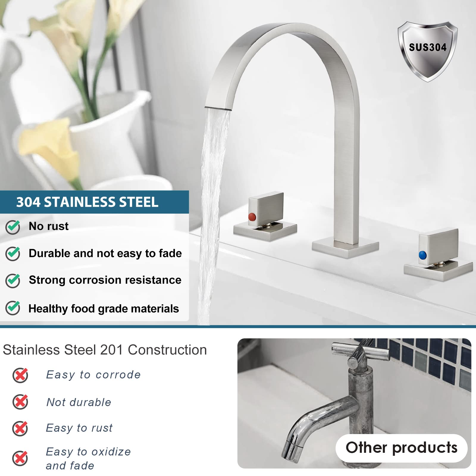 Jincrop Gebürstetes Nickel Badezimmer Wasserhahn 3 Loch, 4 Zoll
