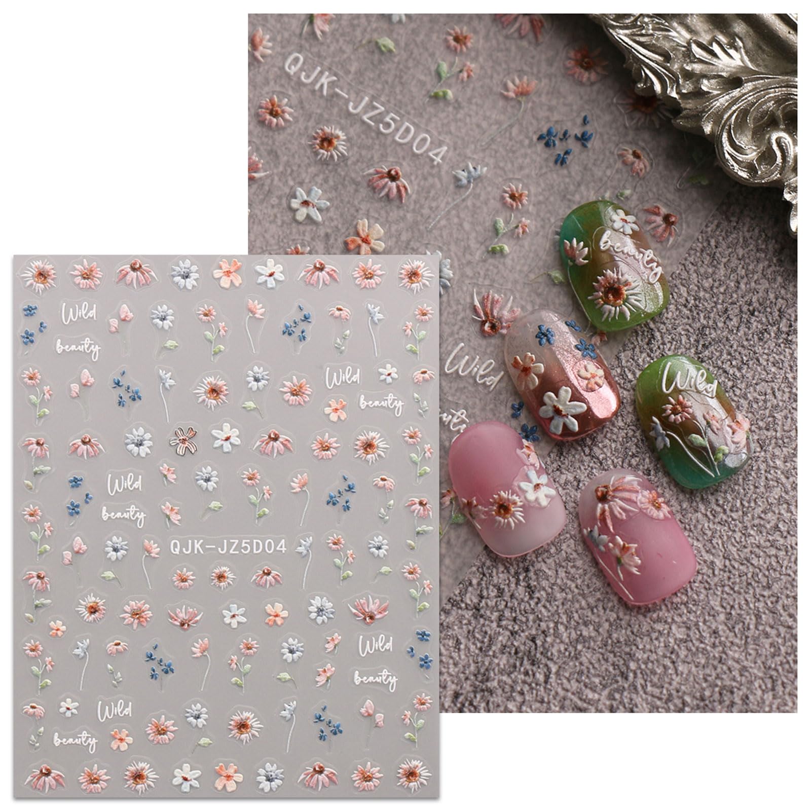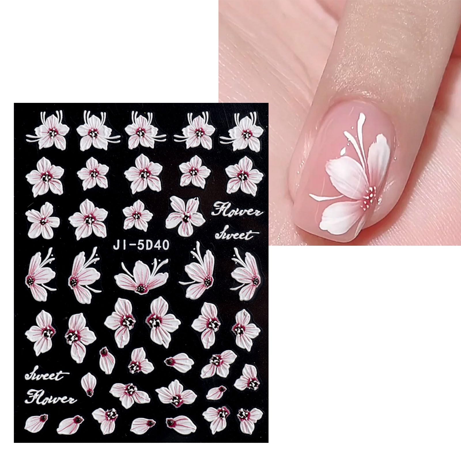Jmeowio 6 FOI 3D -Blumen Für Nägel Frühlingsblumen Selbstadhäsive Aufk