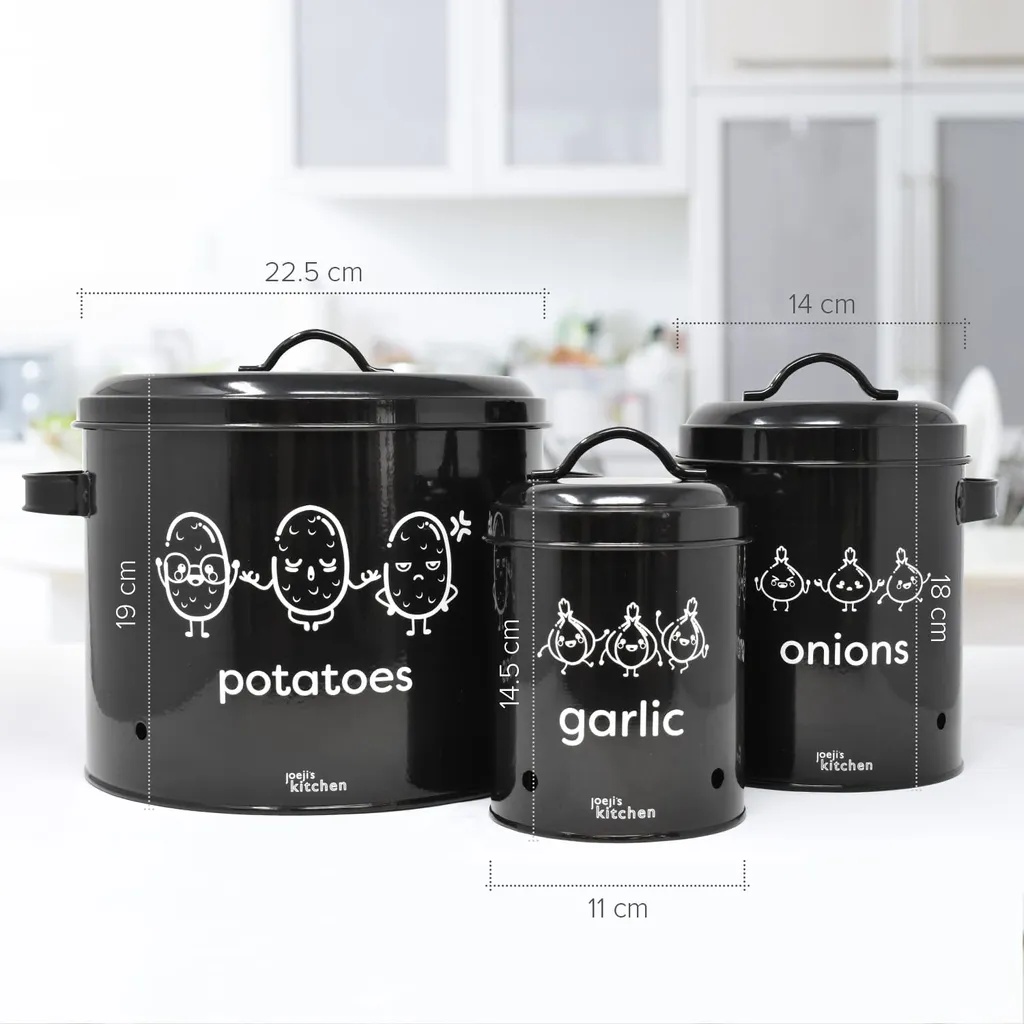 Joeji's Kitchen Kartoffel Aufbewahrungsbox 3er-Set Metall Kartoffel