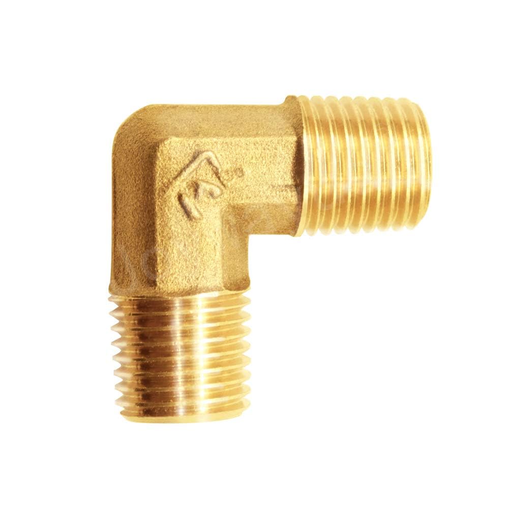 Joywayus Winkelverschraubung Außengewinde, 1/8 Zoll NPT Außengewinde X 1/8 Zoll NPT-Außengewinde, 90 Grad Geschmiedetes Messing, Rechtwinklig, 2 Stück