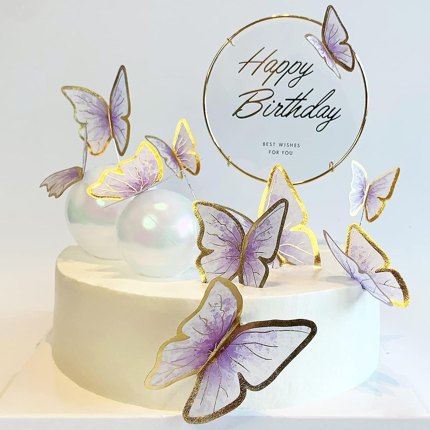Jrzyhi 11pcs Cake Topper Schmetterling Kuchen Deko Mit Happy Birthday Kuchen Topper Schmetterlinge Geburtstag Kuchendekoration Glitter Regenbogen Schmetterling Fee Dekoration Für Mädchen Baby Party