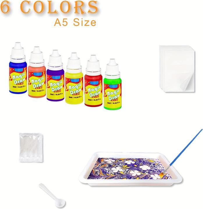 Coodoo Wassermarmorierungsfarbe Für Kinder – Kunsthandwerk Für Mädchen Und Jungen, Bastelsets, Ideale Geschenke Für Kinder Im Alter Von 6+ Bis 8–12 Jahren