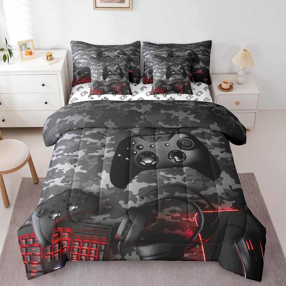 CHEFFS Gaming Bettwäsche 135x200 Gamepad Bettbezug Set Kinderbettwäsche Mikrofaser Jungen, Gamer Bettwäsche-Set 3D Drucken Gamer Bettbezug Und Kissenbezug (220 X 260 Cm,10