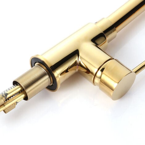 Küche Gold FROPO Gebürstete Gold-Küchenarmatur, Einhand-Gold-Küchenspüle Goldene Wasserhähne Lenz Küchenarmatur 'Kalani²' matt gold mit Pendelbrause | toom Baumarkt 【Sicher & gesund】 Gold Küchenarmatur besteht aus SUS304 Edelstahl für Sicherheit und Haltbarkeit, umweltfreundliche ausziehbare Küchenarmatur aus Edelstahl, die niedrige Bleivorschriften erfüllt, unsere Küchenspüle Armatur wird mit einer hochwertigen tropffreien Keramikkartusche und einem hitzebeständigen PEX-Schlauch geliefert, der hilft, Lecks und Platzen zu verhindern. Pull Down Schlauch und Wasserleitungsschlauch komplett vorinstalliert, DIY Installation in 4 einfachen Schritten und in kurzer Zeit, kein Klempner erforderlich. Warum FROPO wählen? Trotz des minimalistischen Stils ist der Wasserhahn voll funktionsfähig, und im Gegensatz zu traditionellen Armaturen fügt unsere Küchenspüle eine Power-Boost-Funktion mit stärkerem Wasserdruck hinzu, um Ihnen zu helfen, die Reinigung von allem und jeder Ecke der Spüle zu maximieren, ohne zu spritzen. Das 48,3 cm große ausziehbare Design der FROPO Arc Küchenarmatur deckt die gesamte Spüle ab und ermöglicht so einen größeren Reinigungsbereich, um Ihre verschiedenen Reinigungsaufgaben zu erfüllen. Einfache, robuste Verpackung und einfache Installation Unser Streben nach hoher Qualität reduziert Ihre Sorgen über rostige Wasserhähne und Lecks Wer für seine Küchenarmatur Edelstahl bevorzugt, entscheidet sich für eine hygienische Lösung. Du kannst zwischen matten, glänzenden und gebürsteten Oberflächen wählen FROPO Gebürstete Gold Küchenarmatur, Einhand Gold Küchenspüle Wasserhahn mit herausziehbarem Sprühgerät, moderner Edelstahl Messing Gold Wasserhahn mit Deckplatte, 3 Funktions Sprühkopf, 1 oder 3 Loch Gesunde Küchenarmatur – Genießen Sie Ihre gesunde Küchenarmatur mit bleifreier Wasserleitung und lebensmittelzertifizierten KTW-PEX-Rohren, sicher und geruchslos. Die Küchenspüle Armatur wird mit allem Montagezubehör geliefert, passend für 1 Loch oder 3 Löcher mit Deckplatte, passend für die meisten Waschbecken.