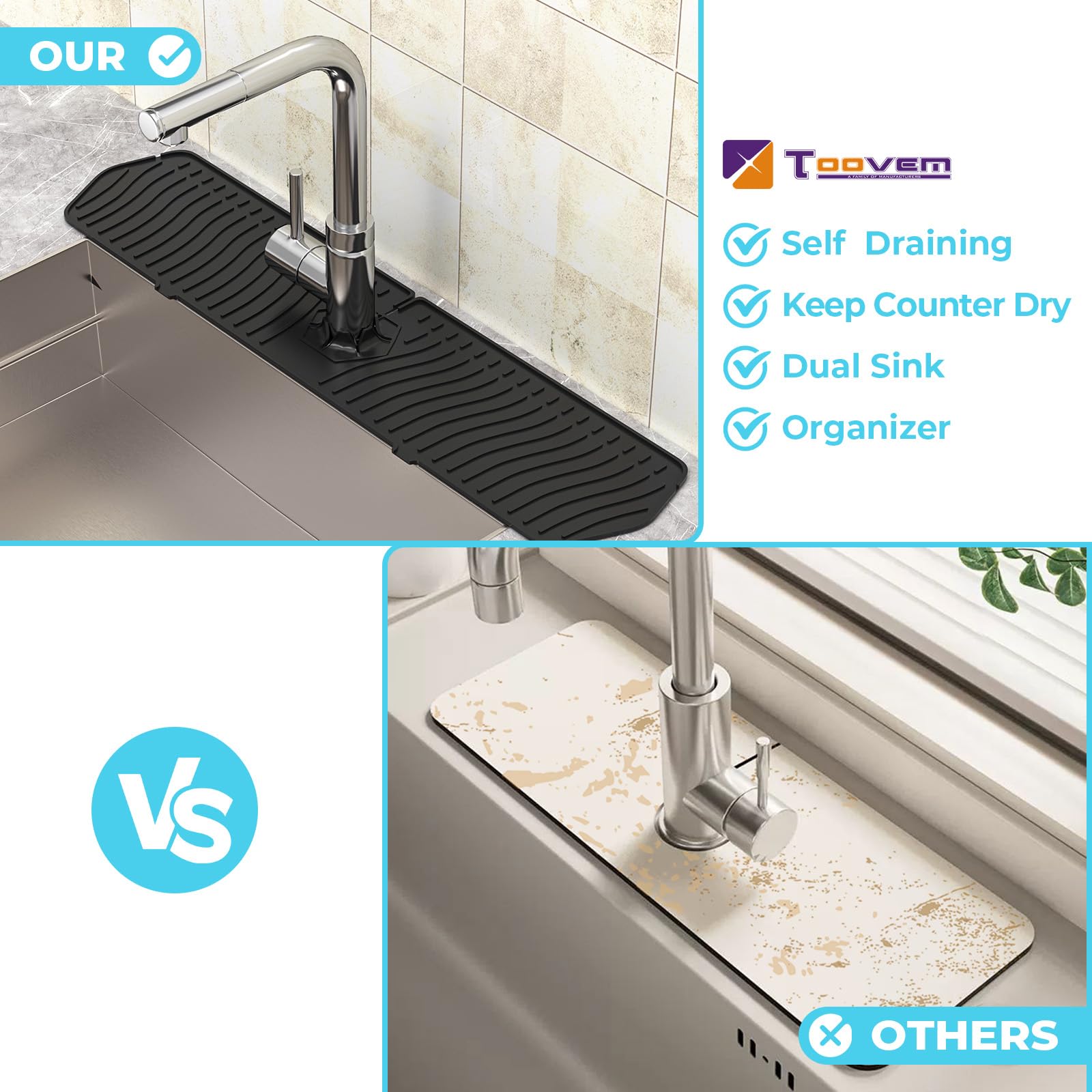 CAISYE Silikon Wasserhahn Matte,61cm*14cm Küchenspüle Spritzschutz - Abtropfmatte Spüle,Faltbare Kanten Und Ecken, Multifunktionale Küchentrockenmatte, Arbeitsplatten-Schutz Für Das Badezimmer(Grau