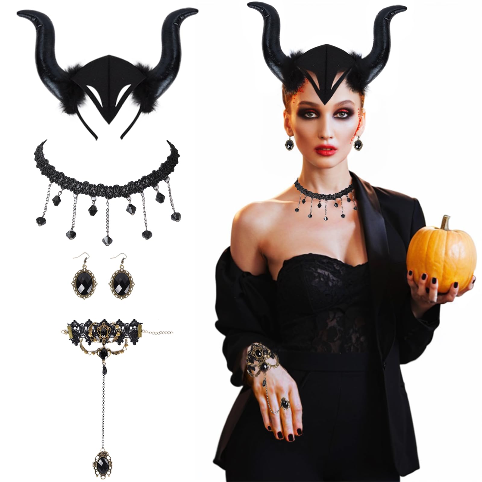 3 Pcs Halloween Königin Hörner Kopfbedeckung,hörner Kopfschmuck Gothic